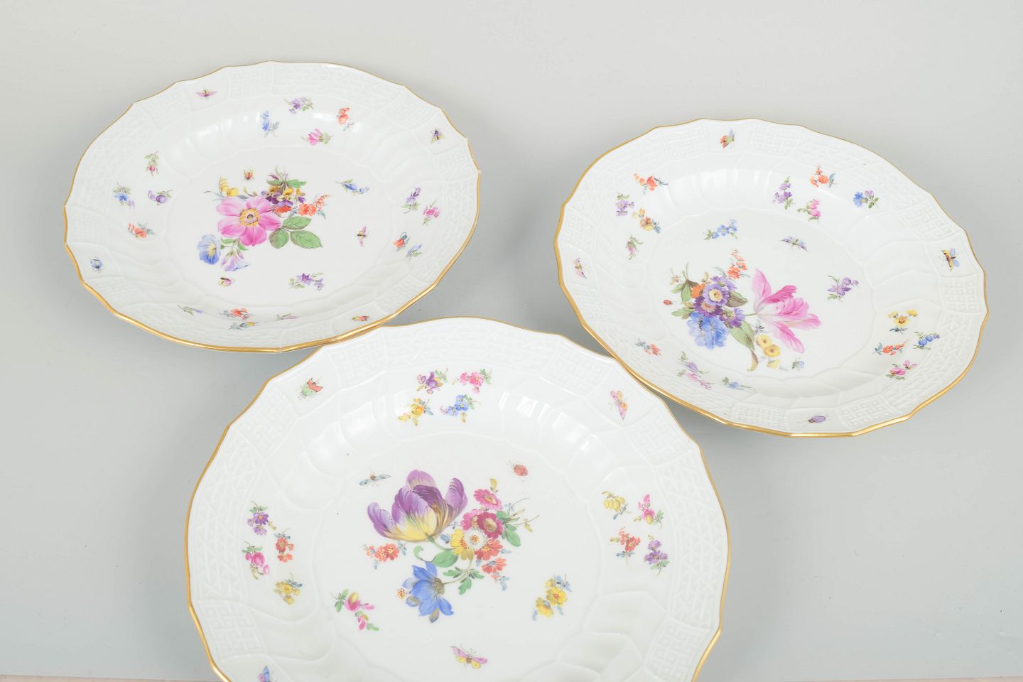 MeissenSet of three dinner plates, early 20th century.