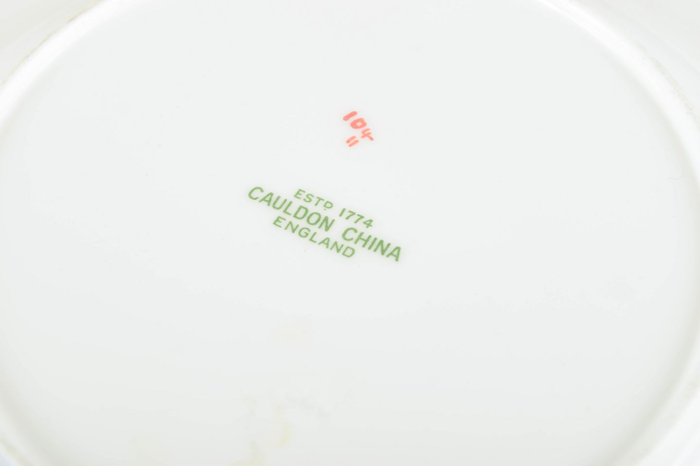 Cauldon China traces its origins back to 1774 and is known for producing high-quality English faience and porcelain tableware. In the mid-20th century, the factory created a range of vibrant patterns inspired by both classical and orientalist motifs, often enhanced with hand-painted details.
