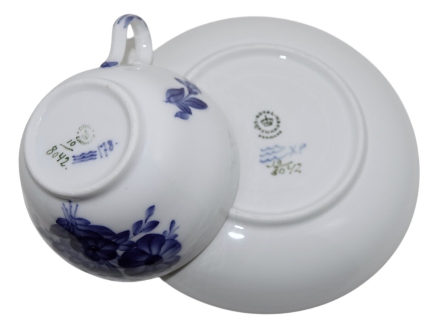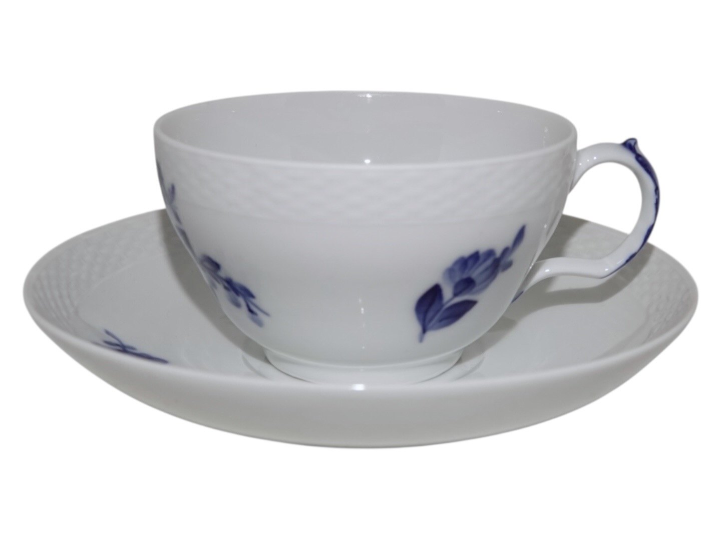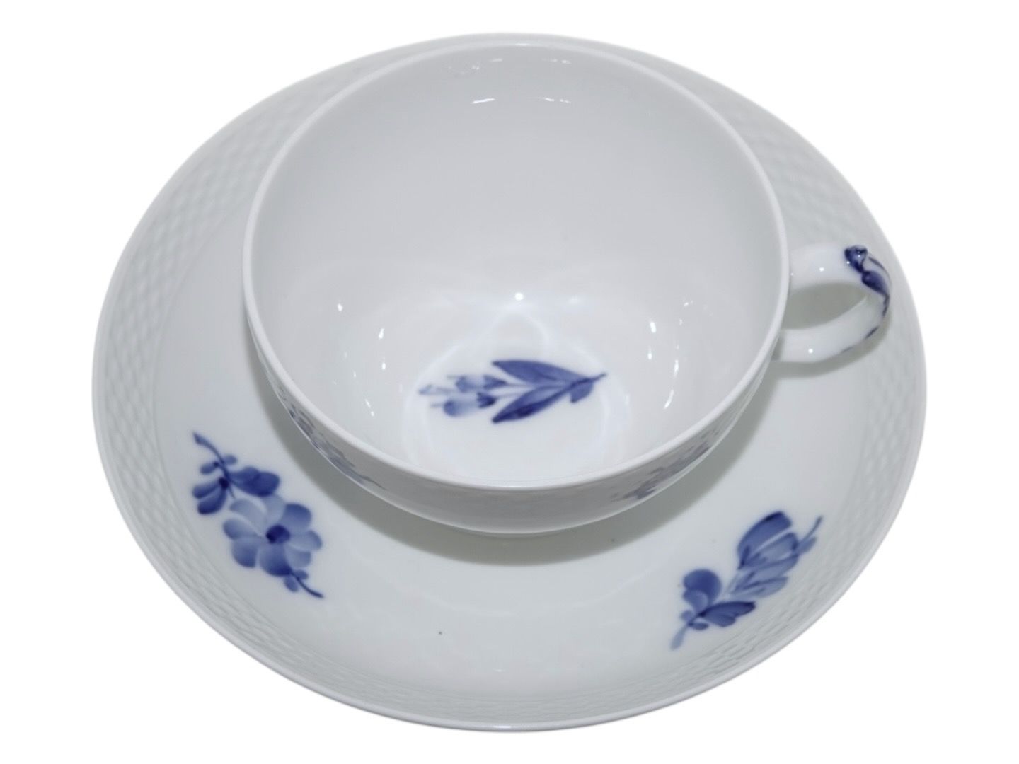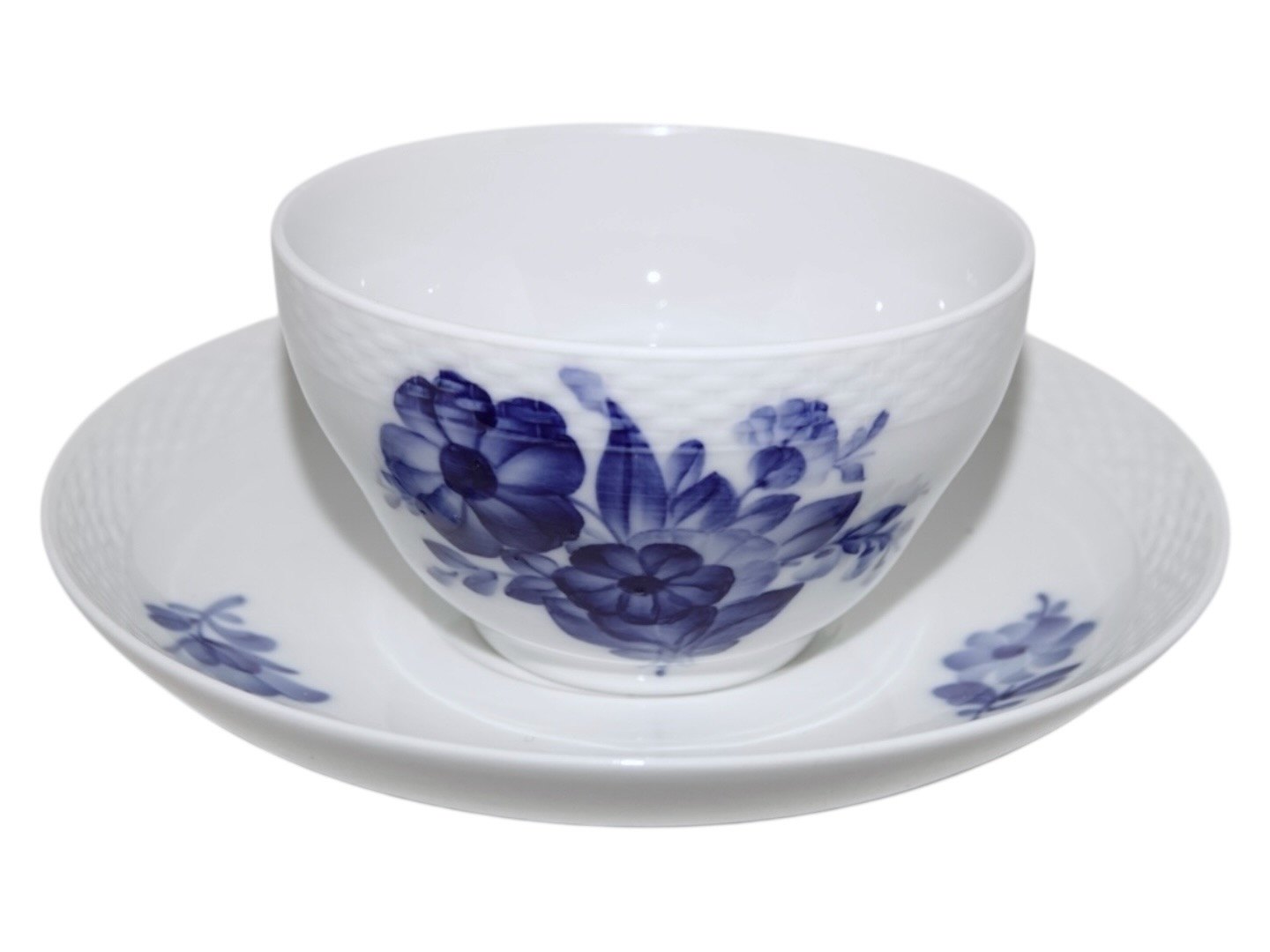 Royal Copenhagen Blå Blomst Flettet, ekstra stortekop / morgenkop med indvendig bemaling samt tilhørende underkop.