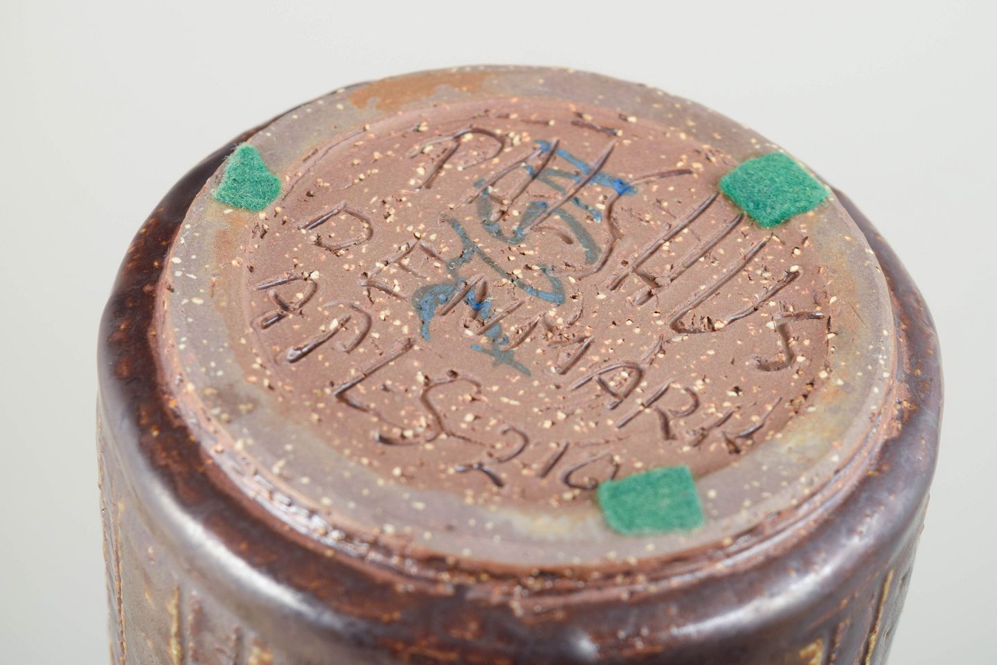 Palshus Keramik blev grundlagt i 1948 af Per og Annelise Linnemann-Schmidt og er kendt for sine modernistiske stentøjsarbejder med rene linjer, subtile farver og raffinerede relieffer. Produktionen foregik i små serier, ofte hånddrejet og med studio-præget finish, hvilket gør Palshus-keramik særdeles eftertragtet blandt samlere.