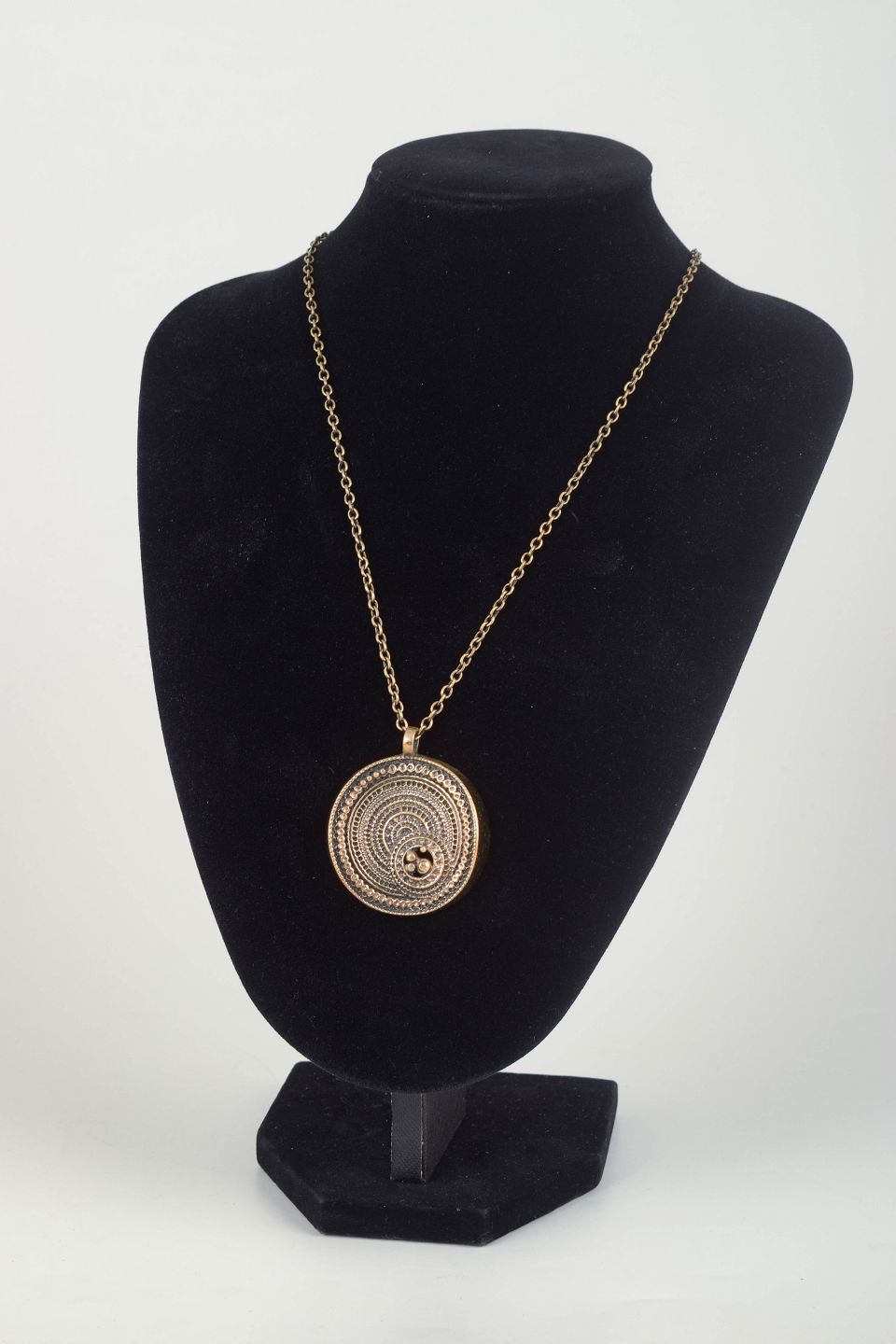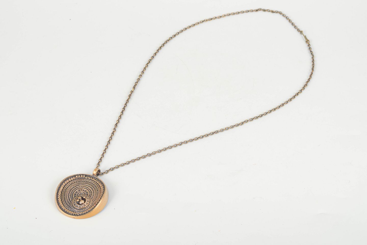 Bronzemedaljon i karakteristisk vikingeinspireret, geometrisk reliefdesign.