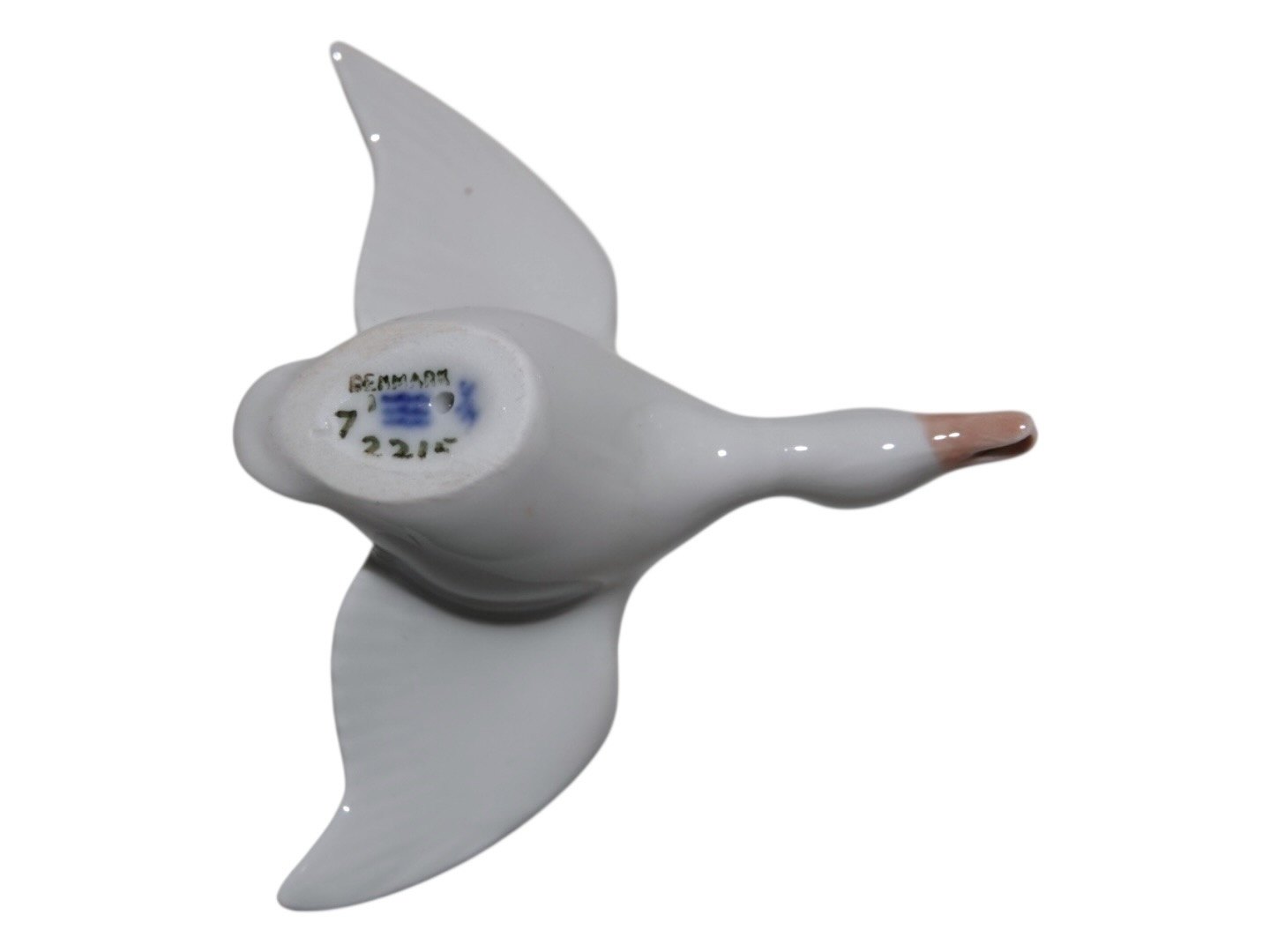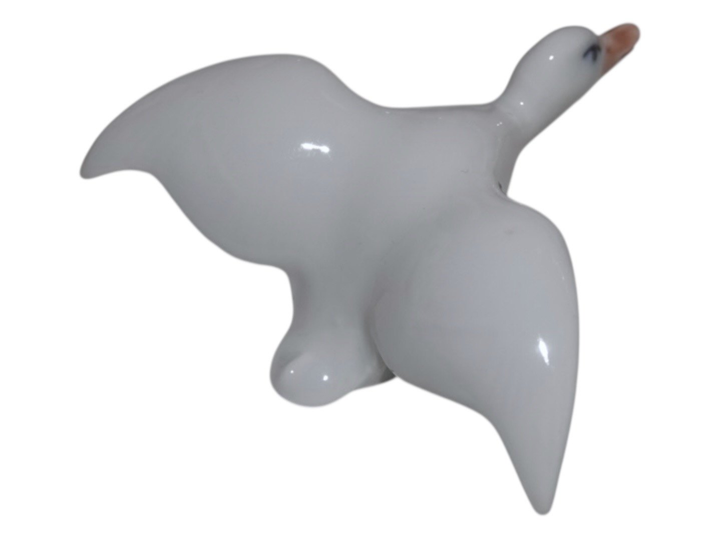 Royal Copenhagen miniature fugle figur, hvid flyvende and.Dekorationsnummer 7/2215.