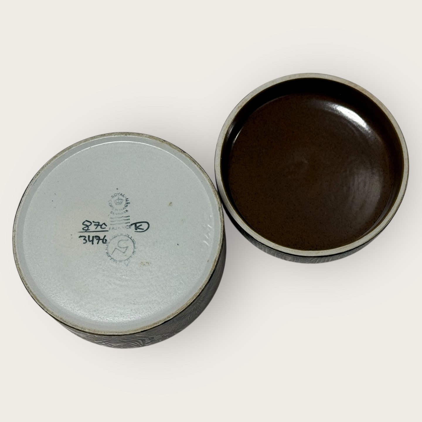 Royal Copenhagen, Lidded jar, # 87C / 3476, diameter 11cm, height 6.5, design Nils Thorsson *Excellent condition*Stock: 1