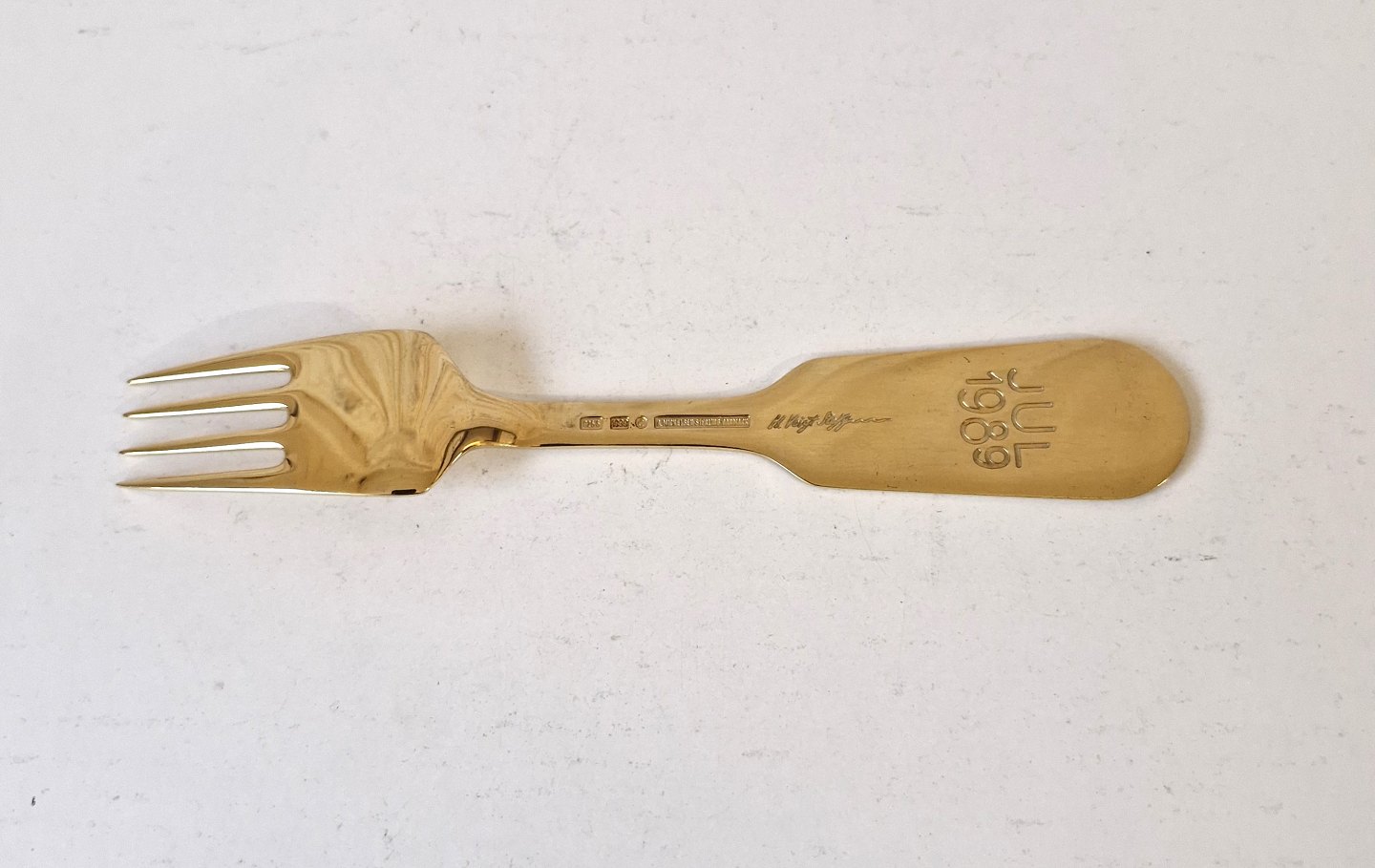 A.Michelsen julegaffel i forgyldt sterlingsølv og emalje fra 1989Stemplet: A.Michelsen - Sterling - Denmark
