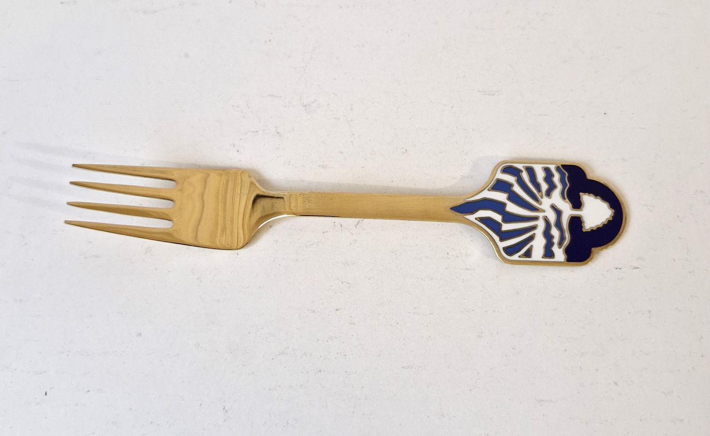A.Michelsen julegaffel i forgyldt sterlingsølv og emalje fra 1986Stemplet: A.Michelsen - Sterling - Denmark