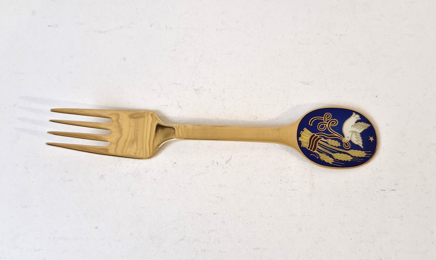 A.Michelsen julegaffel i forgyldt sterlingsølv og emalje fra 1985Stemplet: A.Michelsen - Sterling - Denmark
