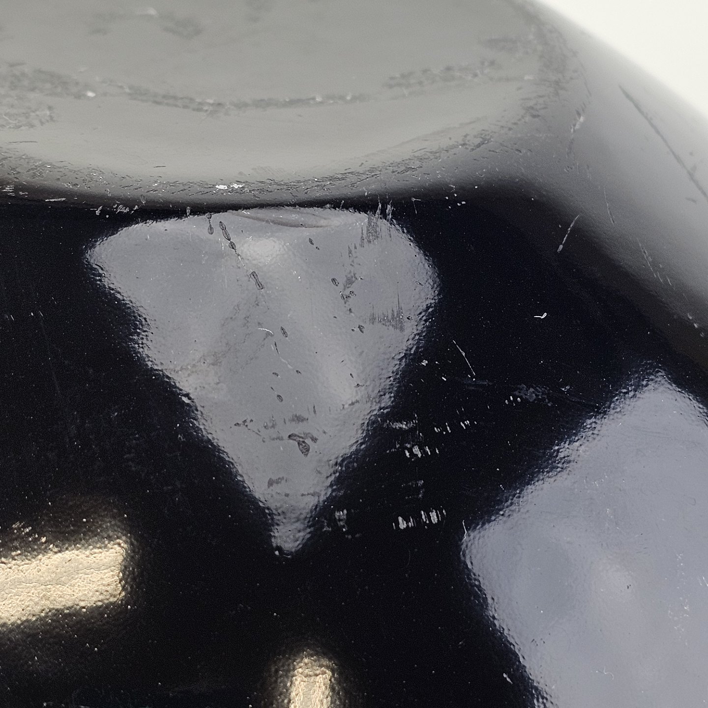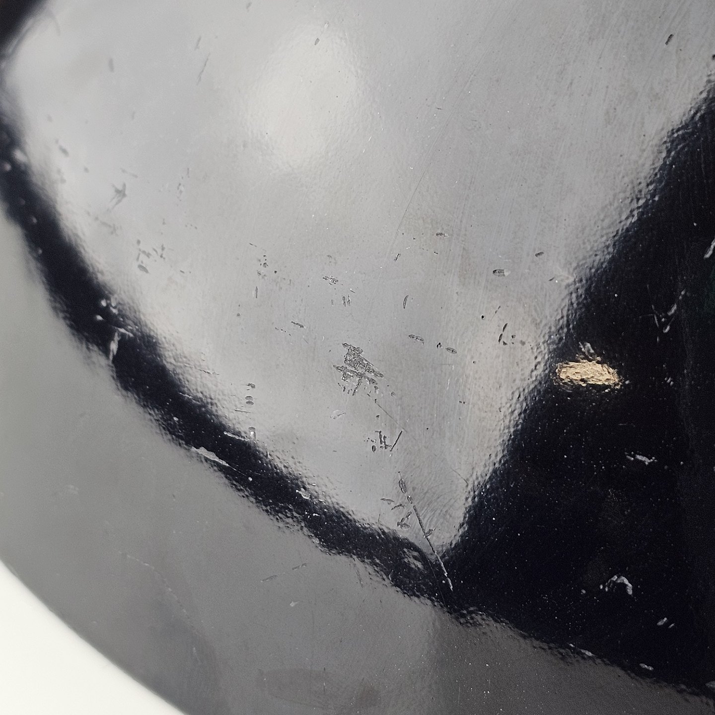 Fremstår med diverse mærker og skrammer i overfladen