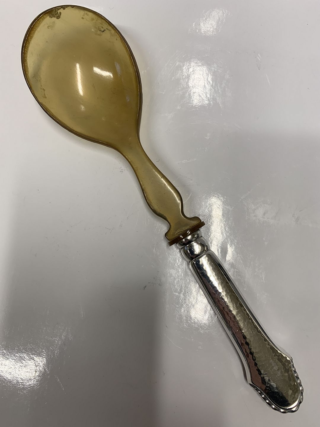 Christiansborg Sølv Surt ske med ben blad storToxværd