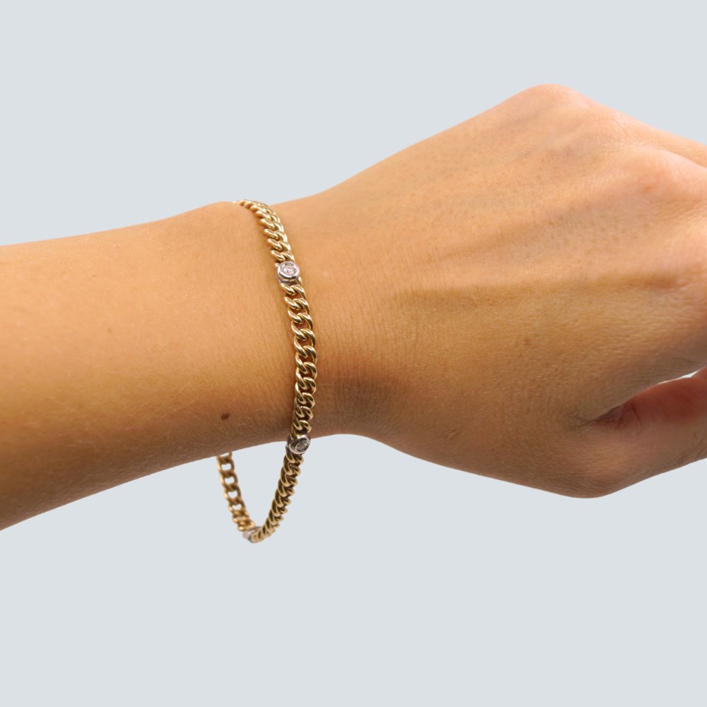Panser guldsmykke.Panser armbånd af 14 kt. guld. prydet med 5 diamanter fattet i hvidguld, i alt 0.24 ct. W VS.