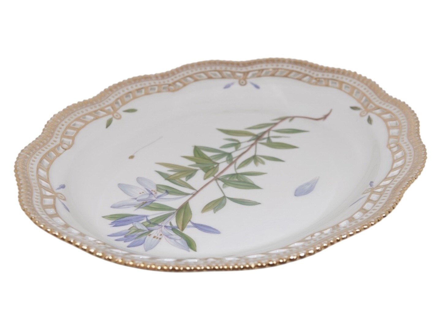 Royal Copenhagen Flora Danica, lille ovalt fad med gennembrudt kant.Dekorationsnummer 20/3537.