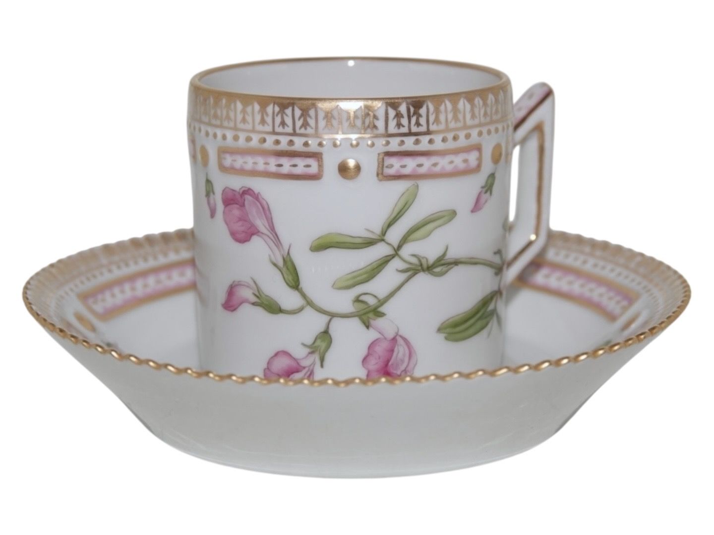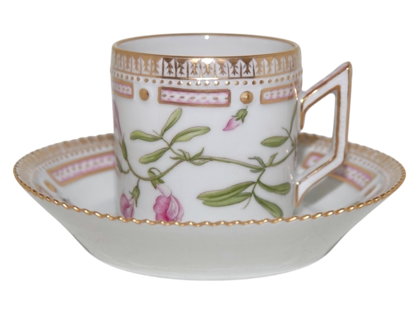 Royal Copenhagen Flora Danica, lille tøndeformet espressokop med tilhørende underkop.