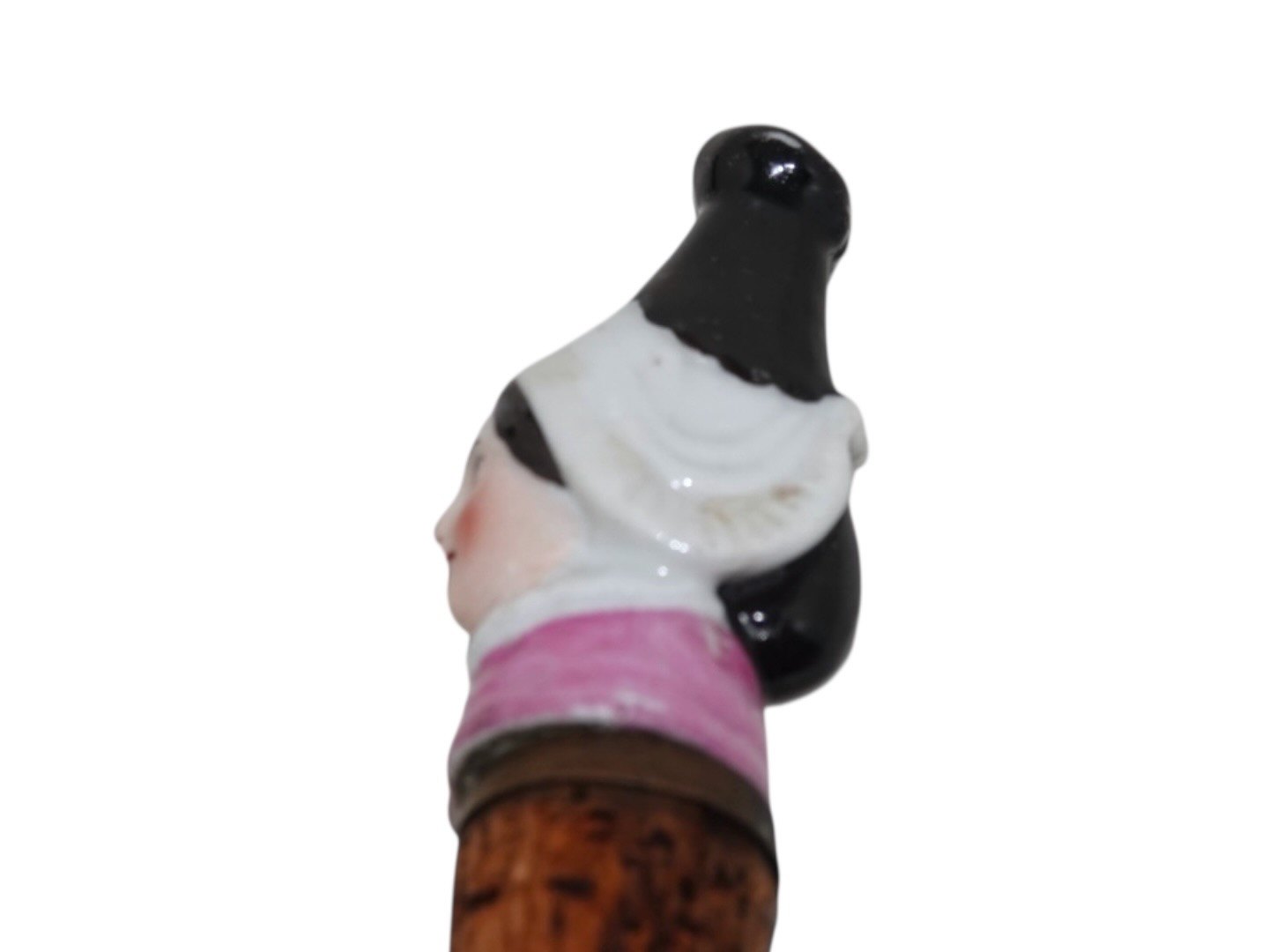 Flaskeprop af dame fra ca. år 1890-1900.Længde 8,5 cm. inklusiv kork.