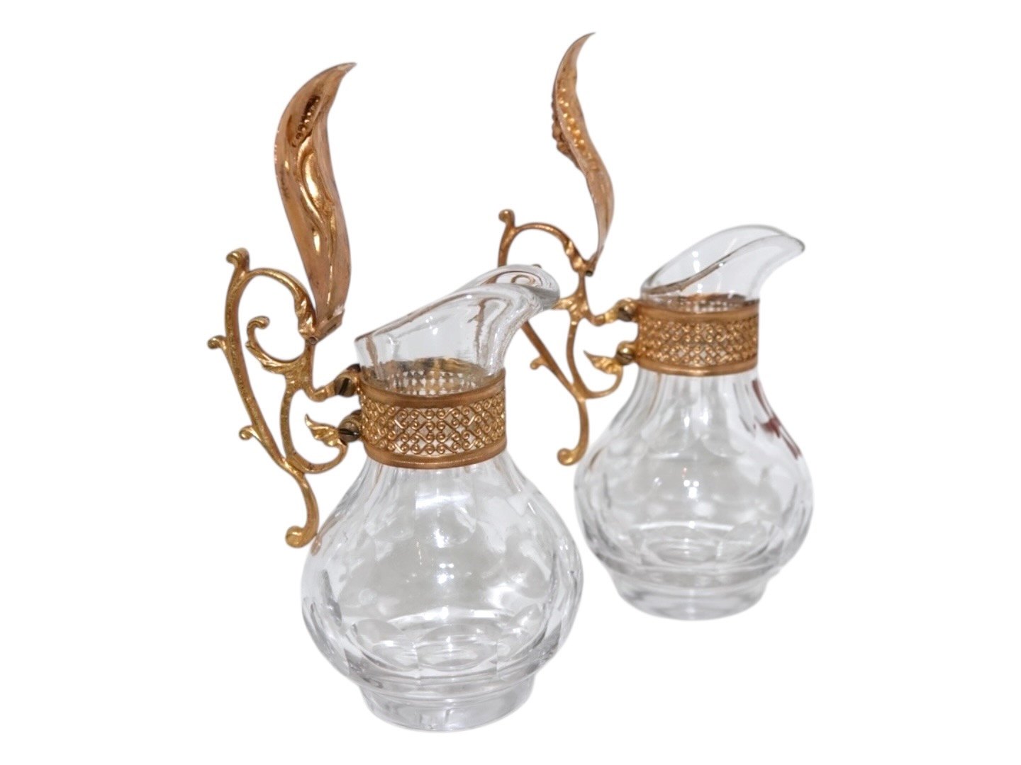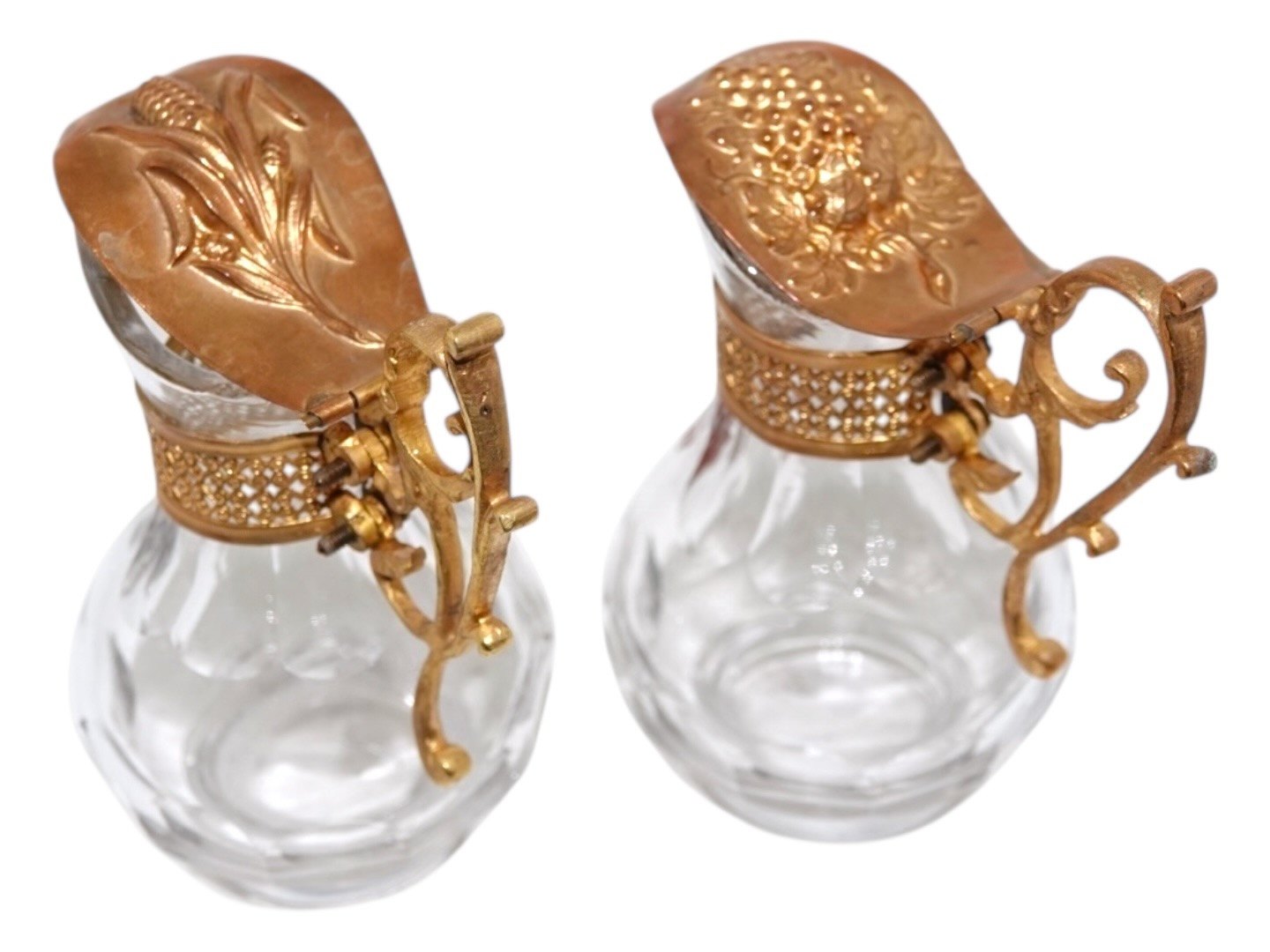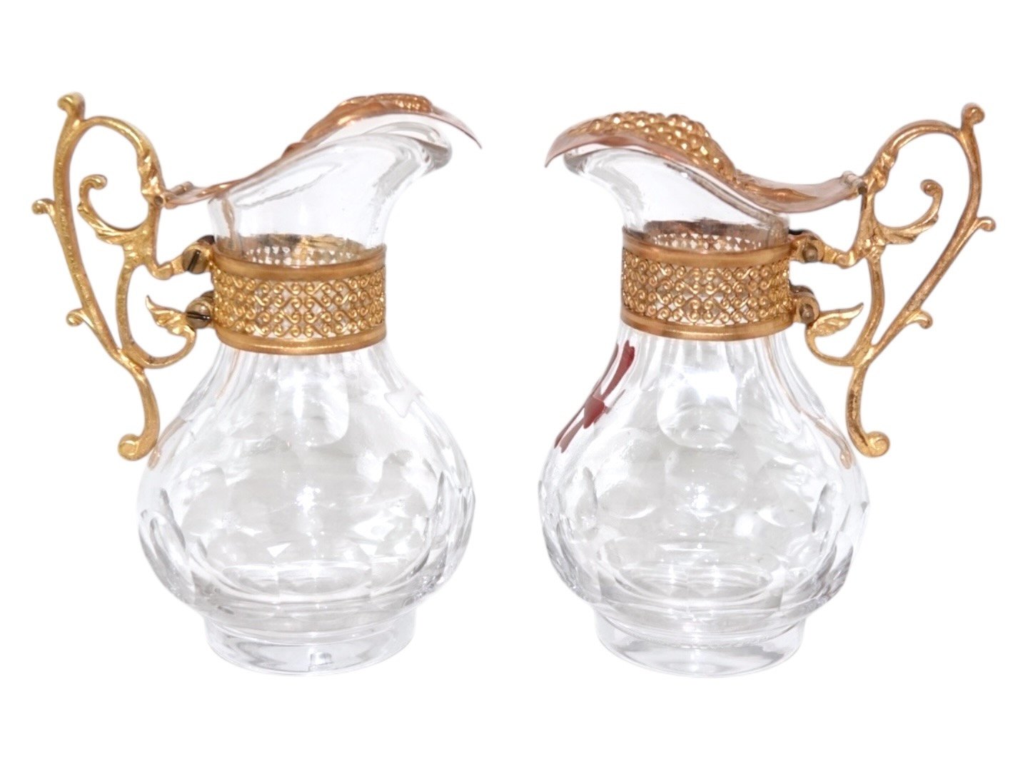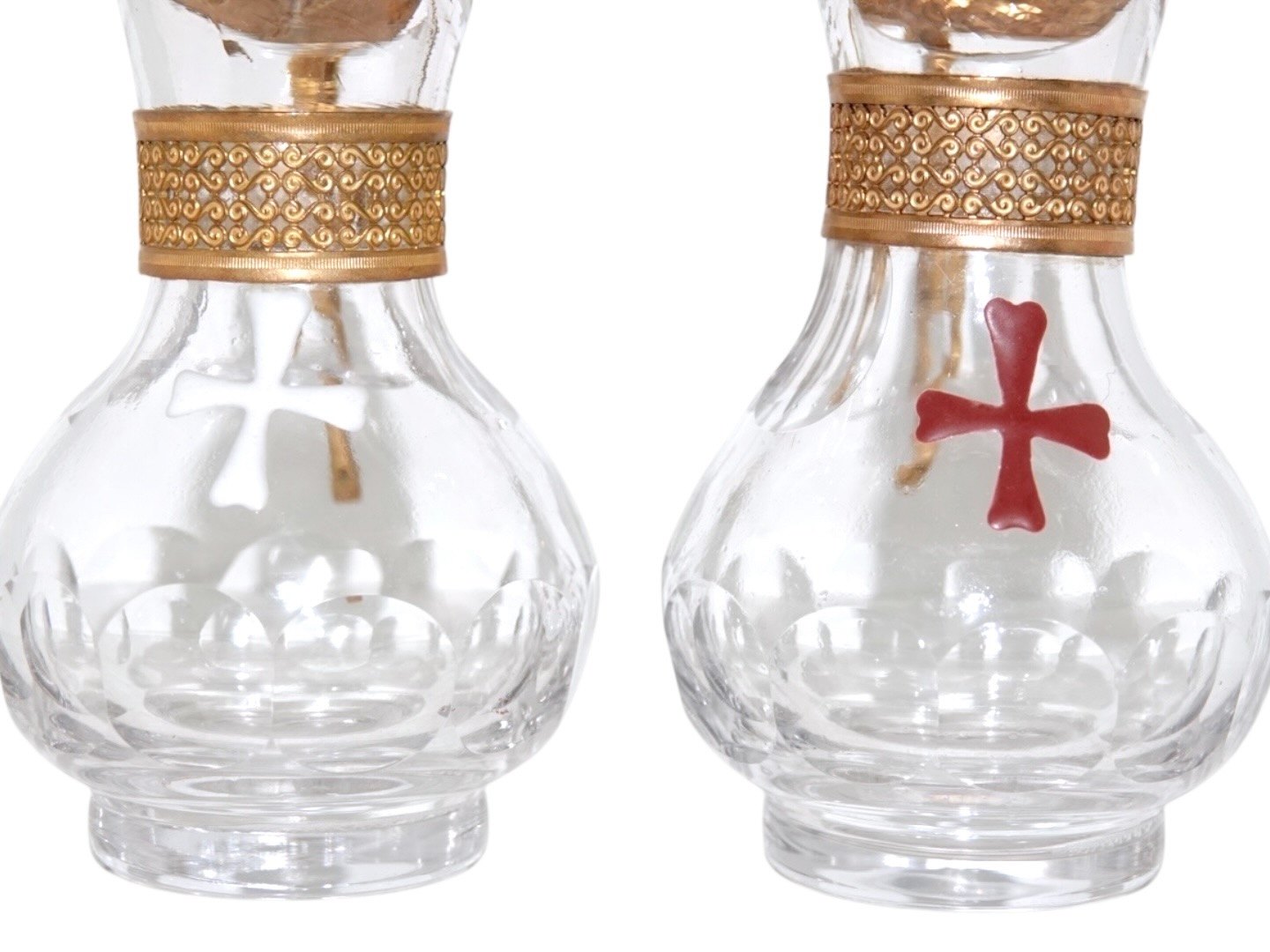 Et par små glaskander med bronze låg og dekoreret med henholdsvis et rødt og hvidt emalje kors.Der er fra omkring år 1900.