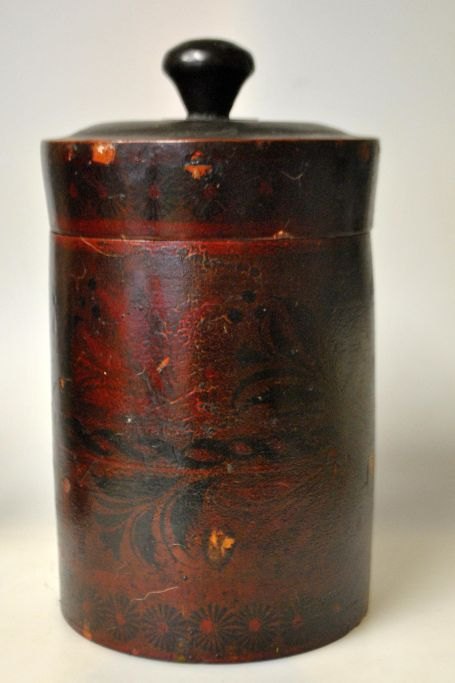 Samling russiske trædåser, 19. årh. Drejet og udhulet tre. Med udvendige bemalinger. Lakeret. Indvendig med sølvfarve. I alt 5 stk. NB: Sælges kun samlet!Emne nummer: 28748