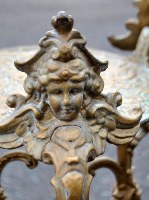 Piedestal i jern, ca. 1870, Danmark. På tre ben med dekorationer af engle og delfiner. H.: 75 cm.Emne nummer: 28756