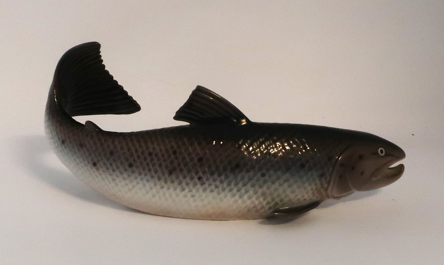 Bing & Grøndahl. Porcelænsfigur. Laks. Model 2366. Længde 22 cm. (1 sortering) Udstiller