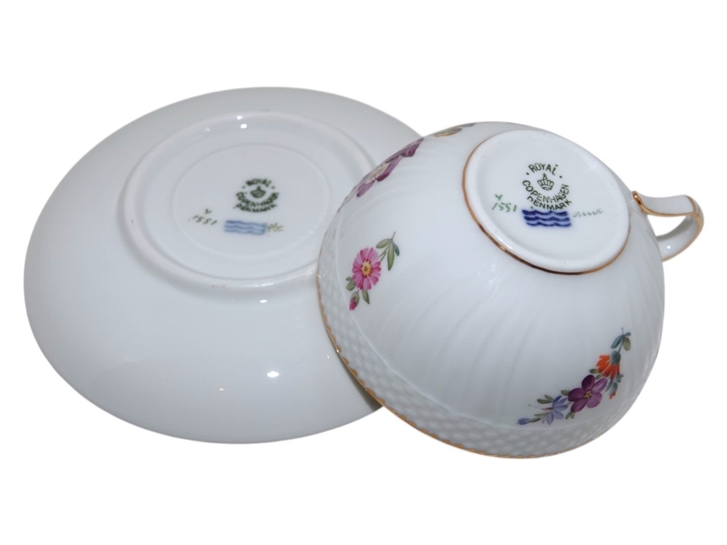 Royal Copenhagen Fuld Saksisk Blomst, tekop med tilhørende underkop.Dekorationsnummer 4/1551.