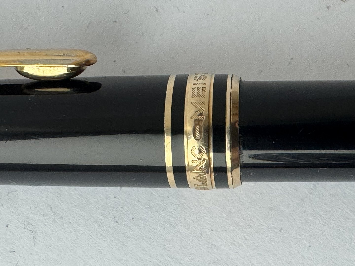 Slank sort Montblanc Meisterstück Classique kuglepen. Klar til at blive brugt med nyere refill. Fremstår i god stand. L. 13,5 cm