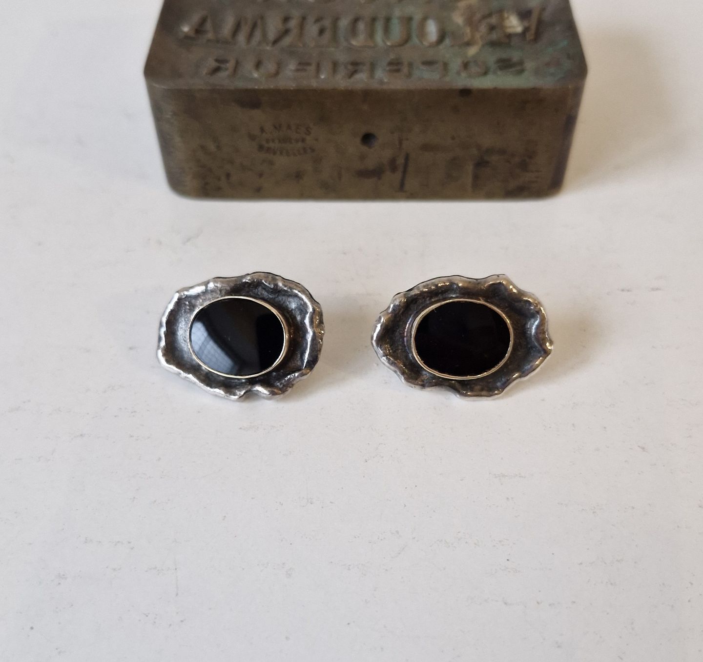 Par store ørestikker i sterlingsølv med onyx af Niels Gunni VaseStemplet: Vase - 925 - Håndarbejde