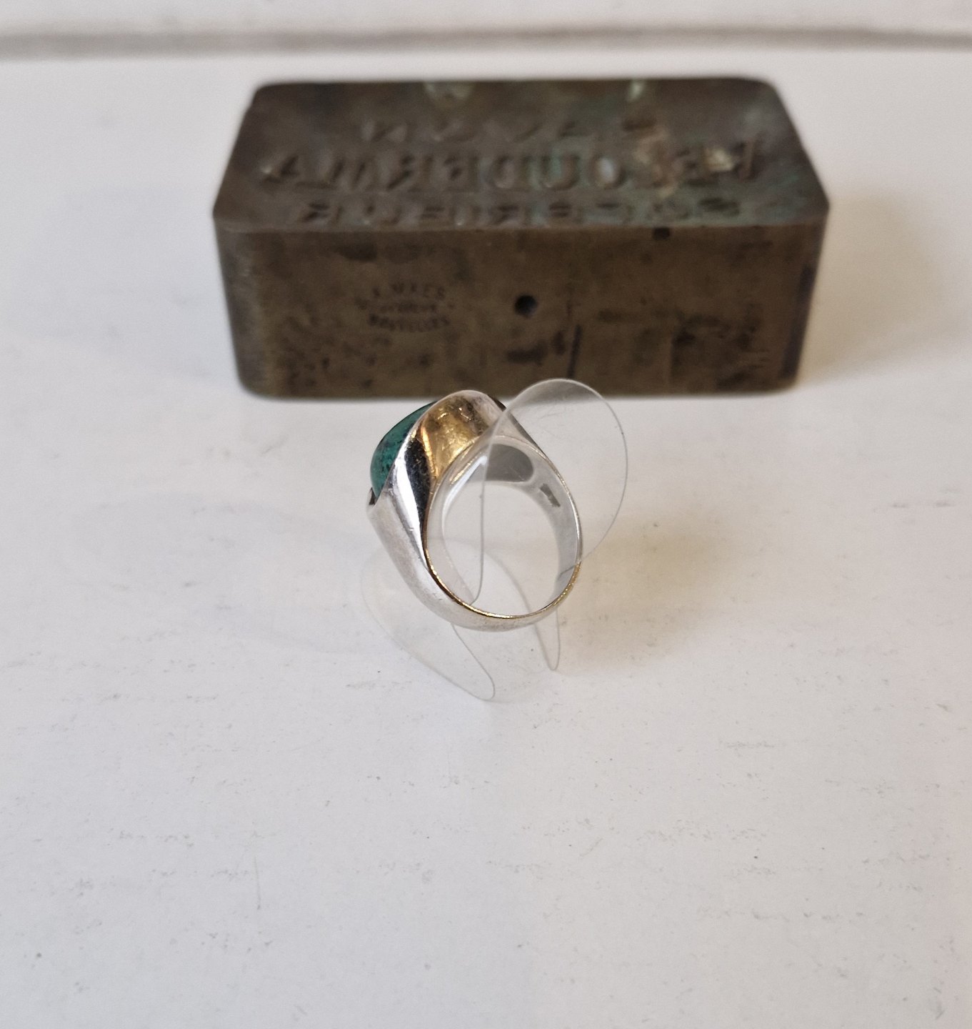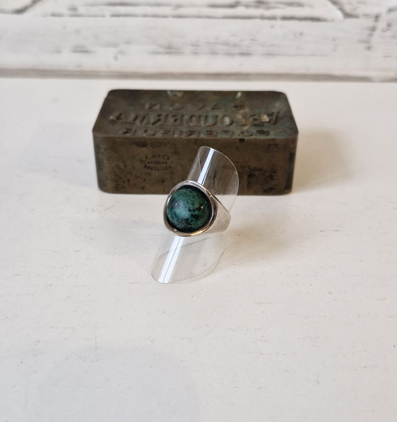 Vintage sølv ring med malakitStemplet: EE - 925