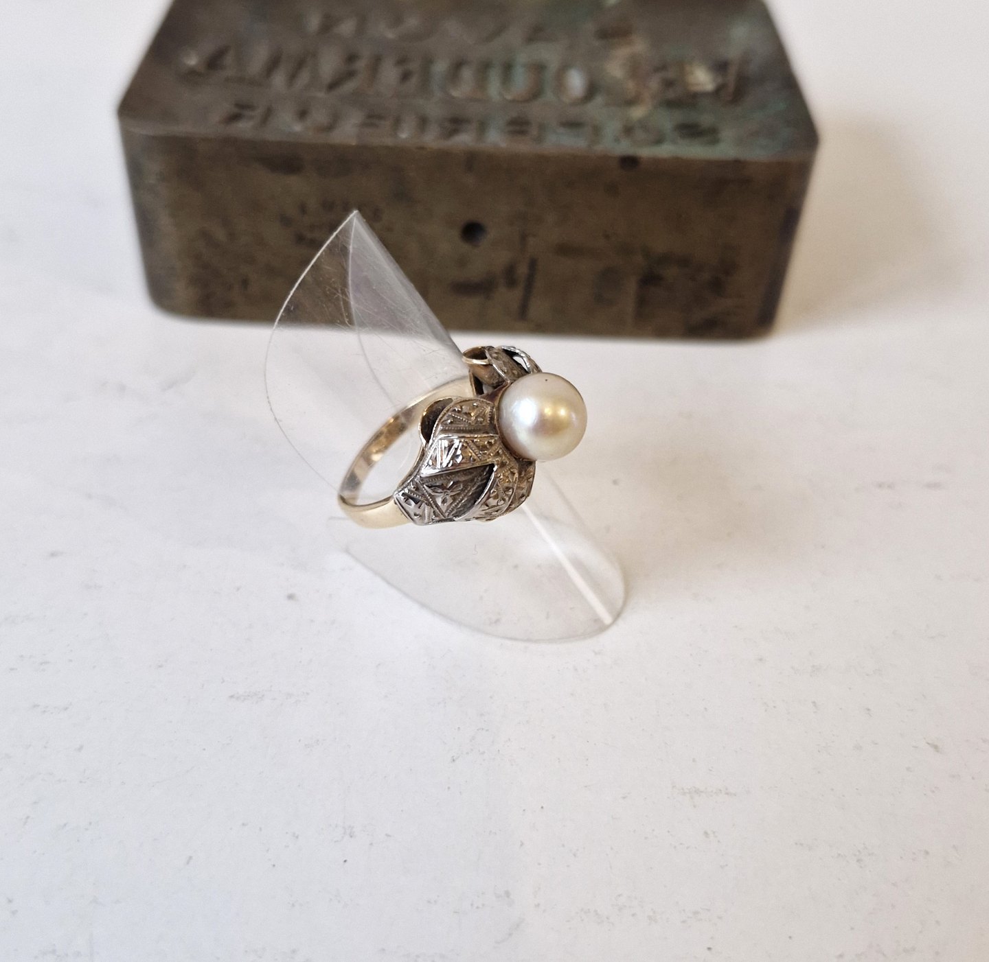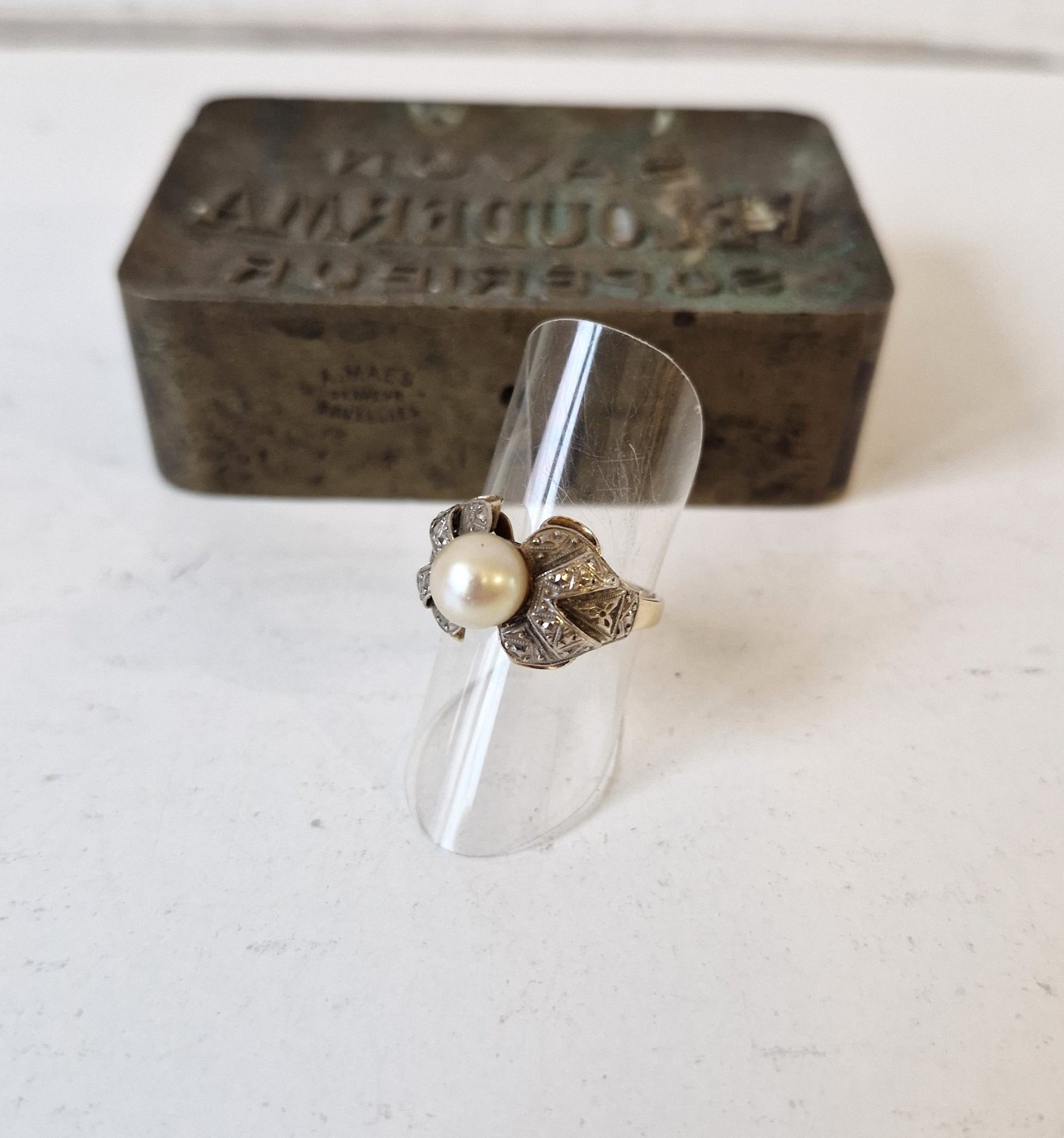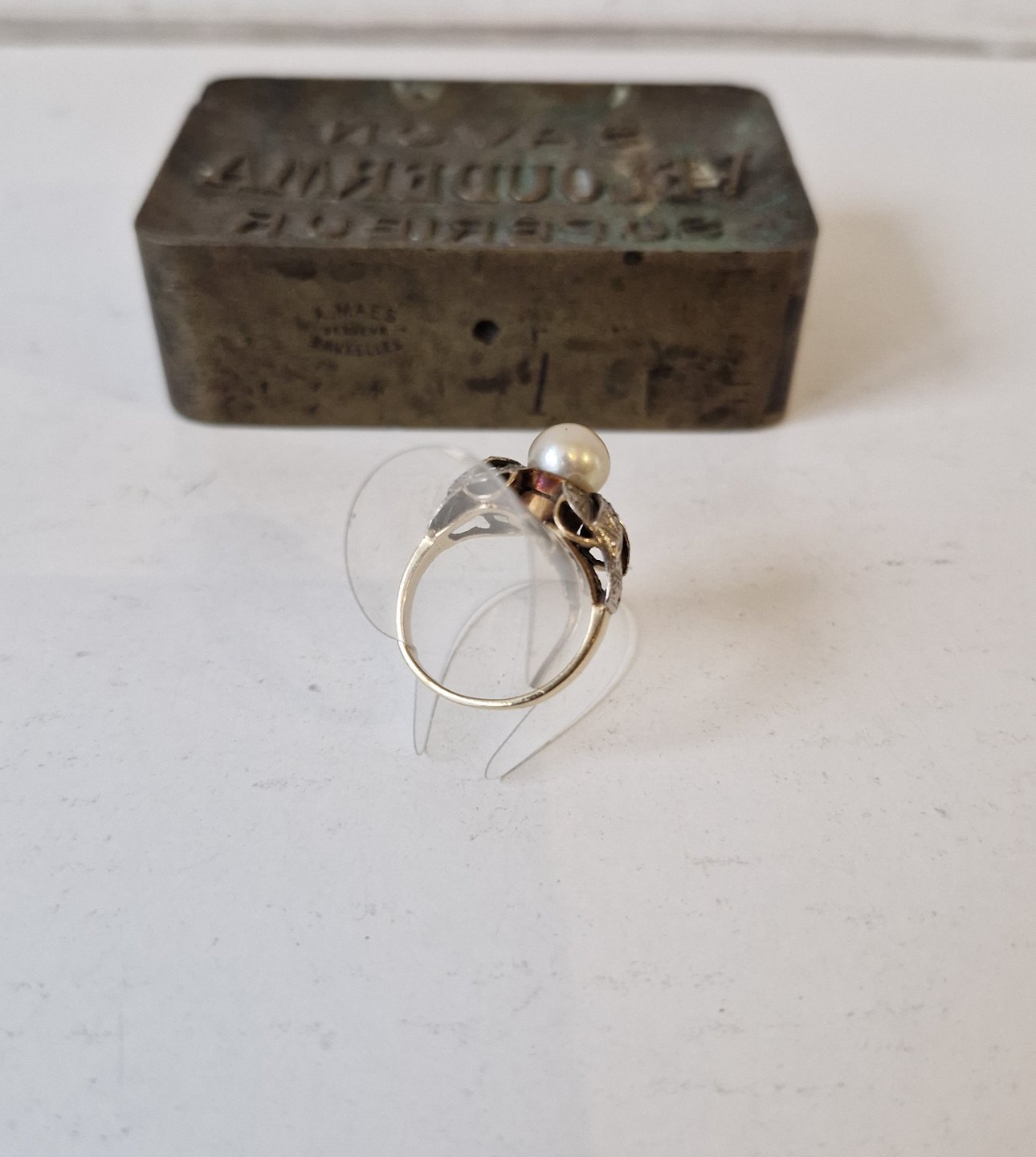 Vintage ring i 18 kt rød og hvidguld med smuk akoya perleRingen er ikke stemplet med testet til en lødighed på 18 kt.