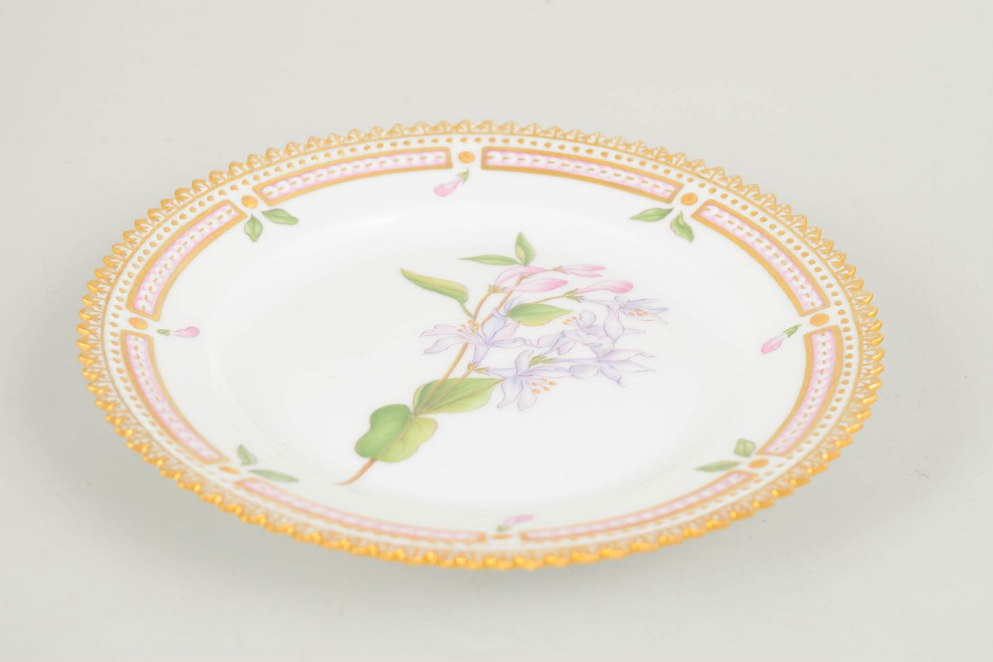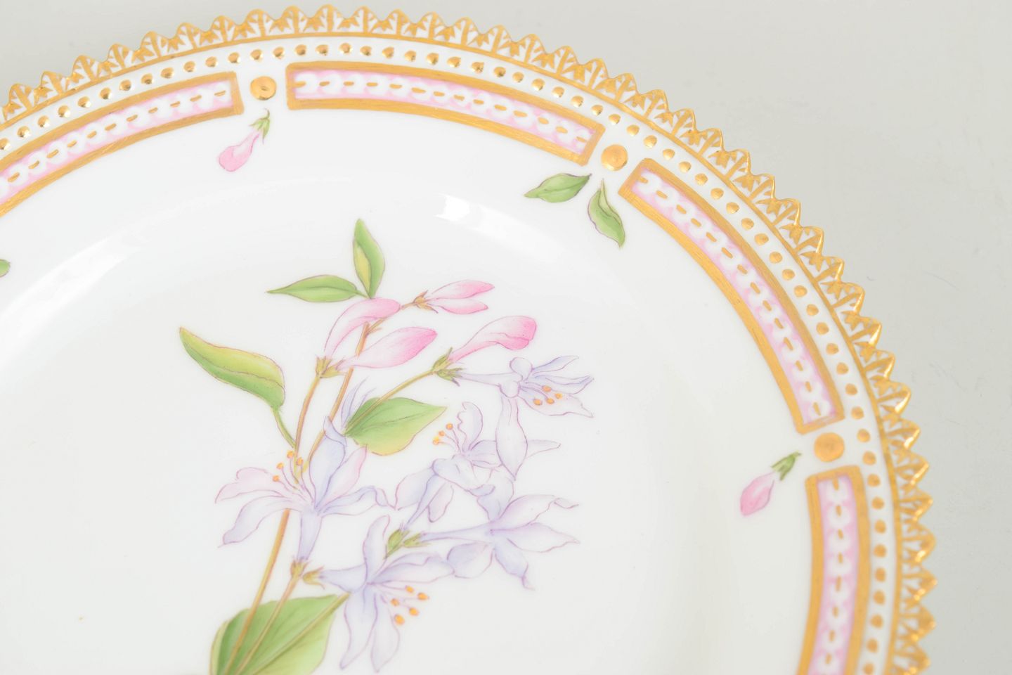 Bio: Flora Danica-stellet blev introduceret i 1790 og regnes blandt Royal Copenhagens mest prestigefyldte produktioner. Dekorationerne er baseret på det monumentale botaniske værk Flora Danica og er kendetegnet ved høj detaljerigdom og fremragende håndværksmæssig kvalitet. Mindre dele som sidetallerkener har traditionelt været anvendt til dessert eller mindre anretninger og er i dag eftertragtede samlerobjekter.
