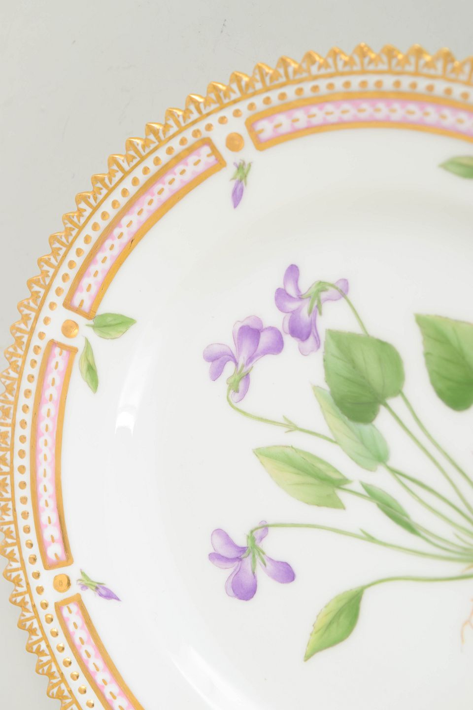 Bio: Flora Danica-stellet blev introduceret i 1790 og regnes blandt Royal Copenhagens mest prestigefyldte produktioner. Dekorationerne er baseret på det monumentale botaniske værk Flora Danica og er kendetegnet ved høj detaljerigdom og fremragende håndværksmæssig kvalitet. Mindre dele som sidetallerkener har traditionelt været anvendt til dessert eller mindre anretninger og er i dag eftertragtede samlerobjekter.