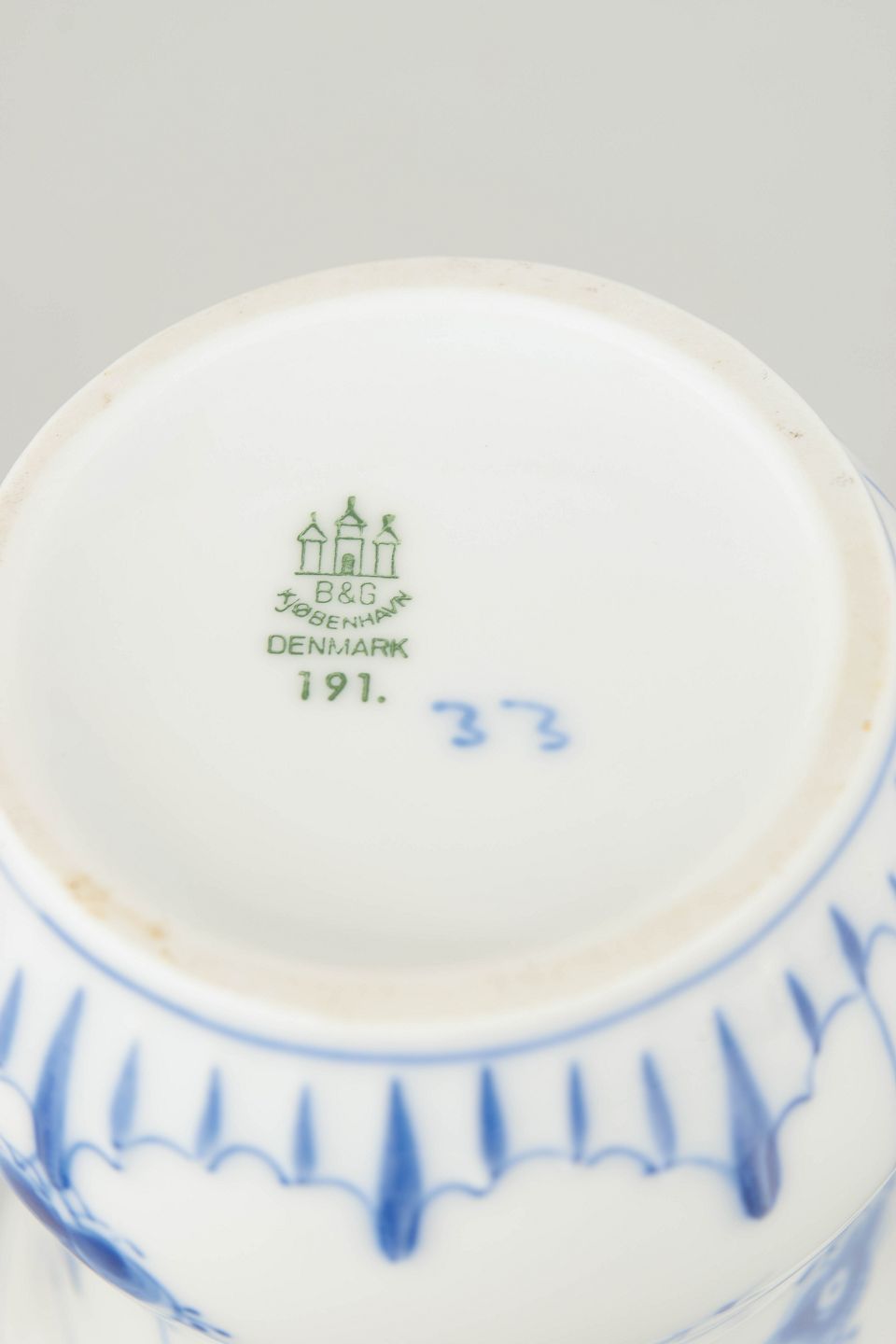 Musselmalet dekorationen hos Bing & Grøndahl er inspireret af det klassiske blå-hvide porcelæn og beslægtet med den kongelige porcelænsfabriks tradition, men ofte udført med en lidt friere og mere malerisk streg. I 1920’erne producerede Bing & Grøndahl en række mindre vaser og pyntegenstande, der kombinerede funktionel elegance med høj håndværksmæssig kvalitet og gjorde porcelænet velegnet til både brug og dekoration.