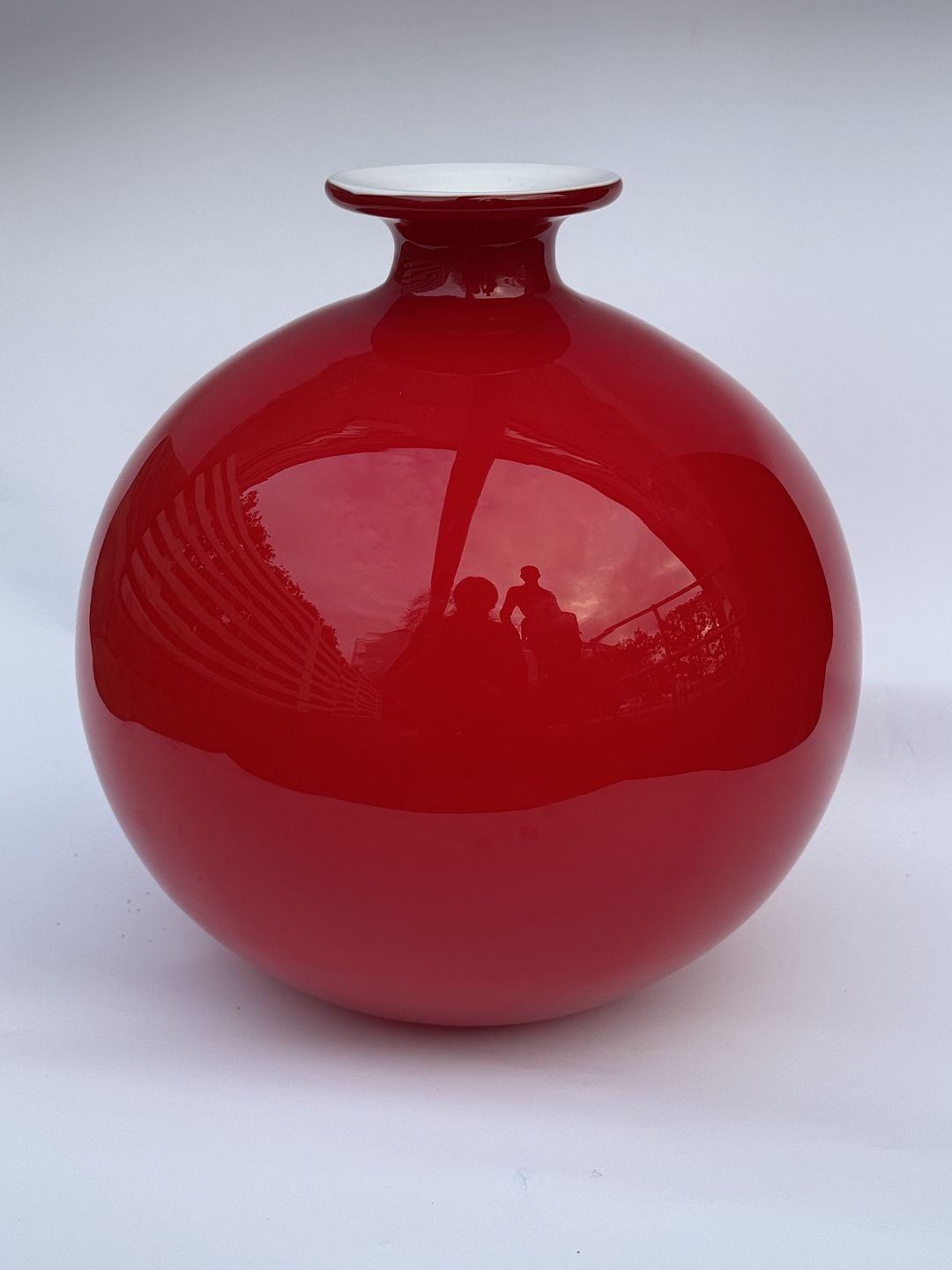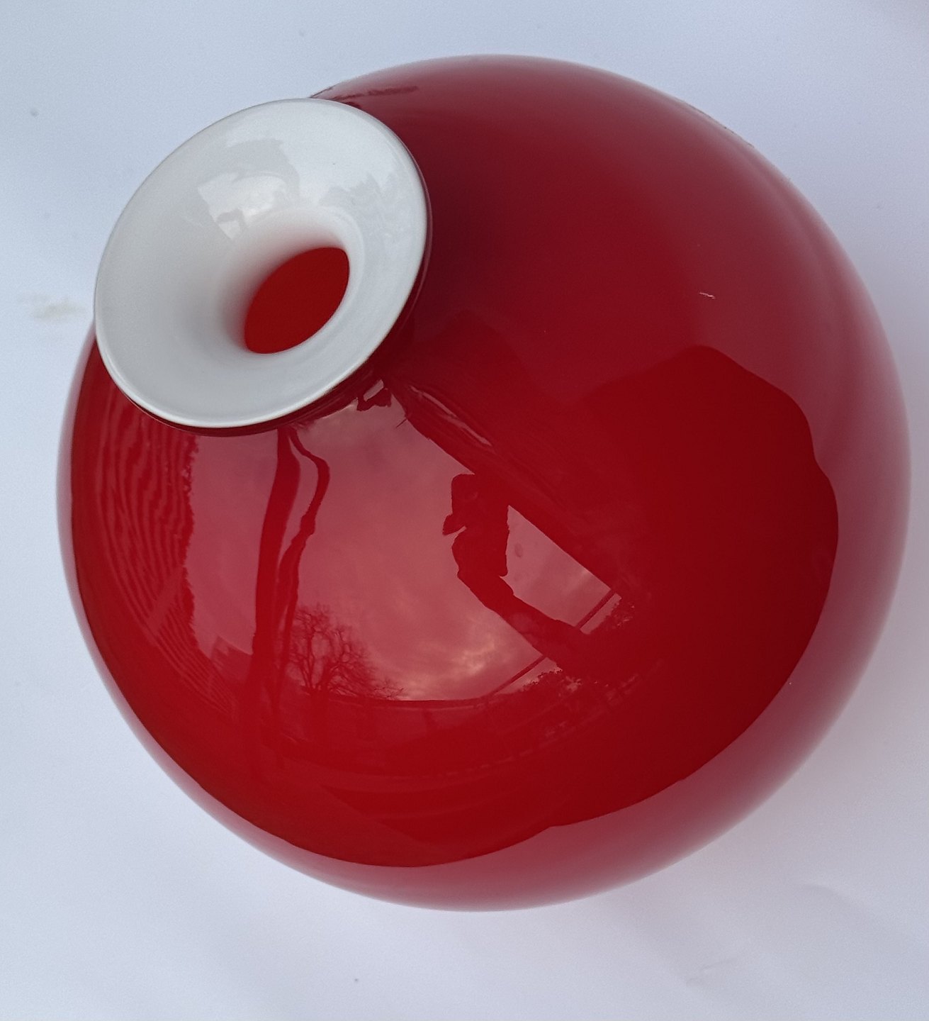 RØD & HVID: Stor rund Carnaby glass vase fra Holmegaard / Kastrup glasværk designet af Per Lütken. 1. sortering. I god stand. Mål: H. 20 cm