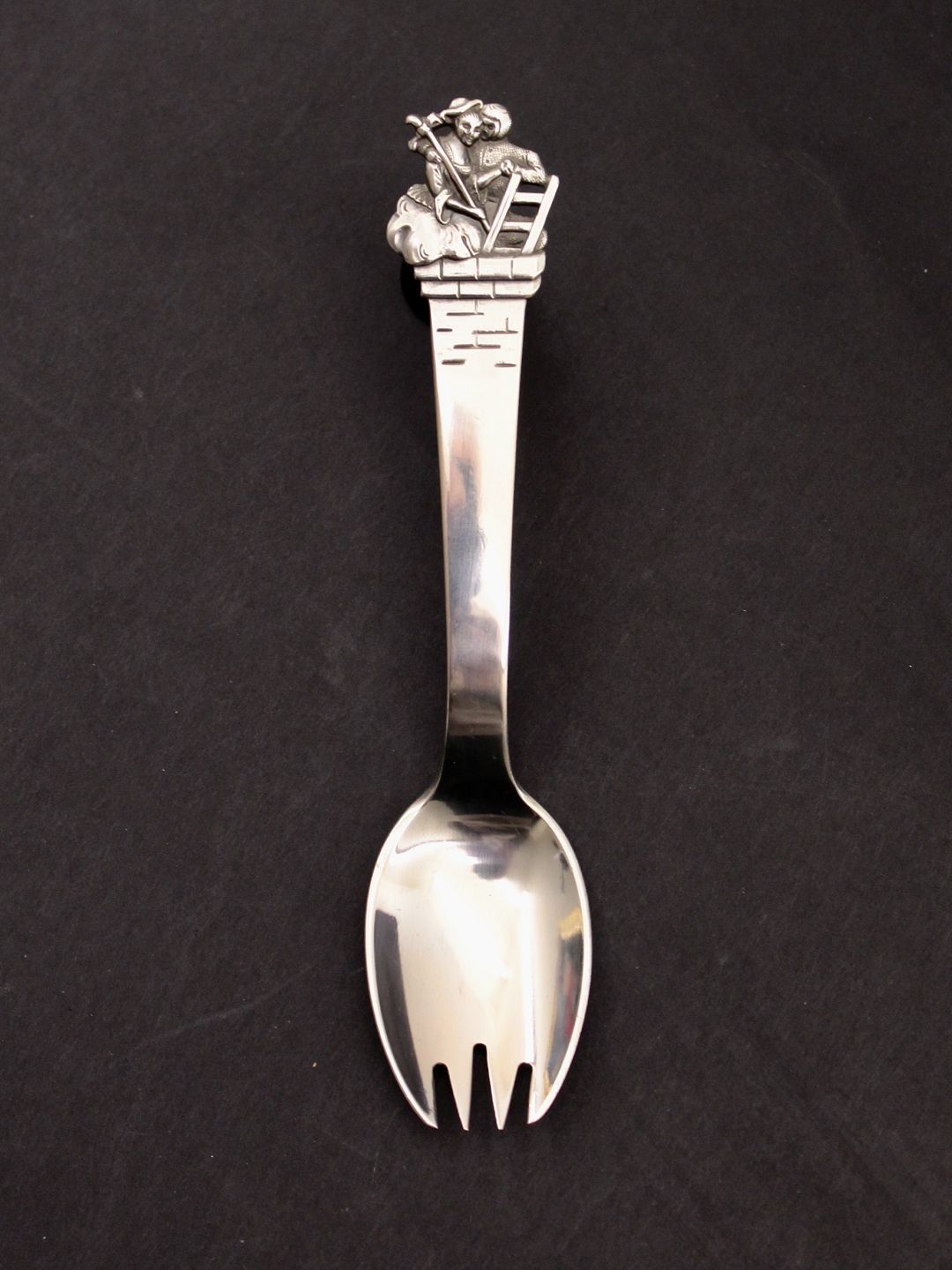 H C Andersen barne ske/gaffel 14,5 cm. "Hyrdinden og Skorstensfejeren" tretårnet sølv flot som ny ingen graveringer emne nr. 628495