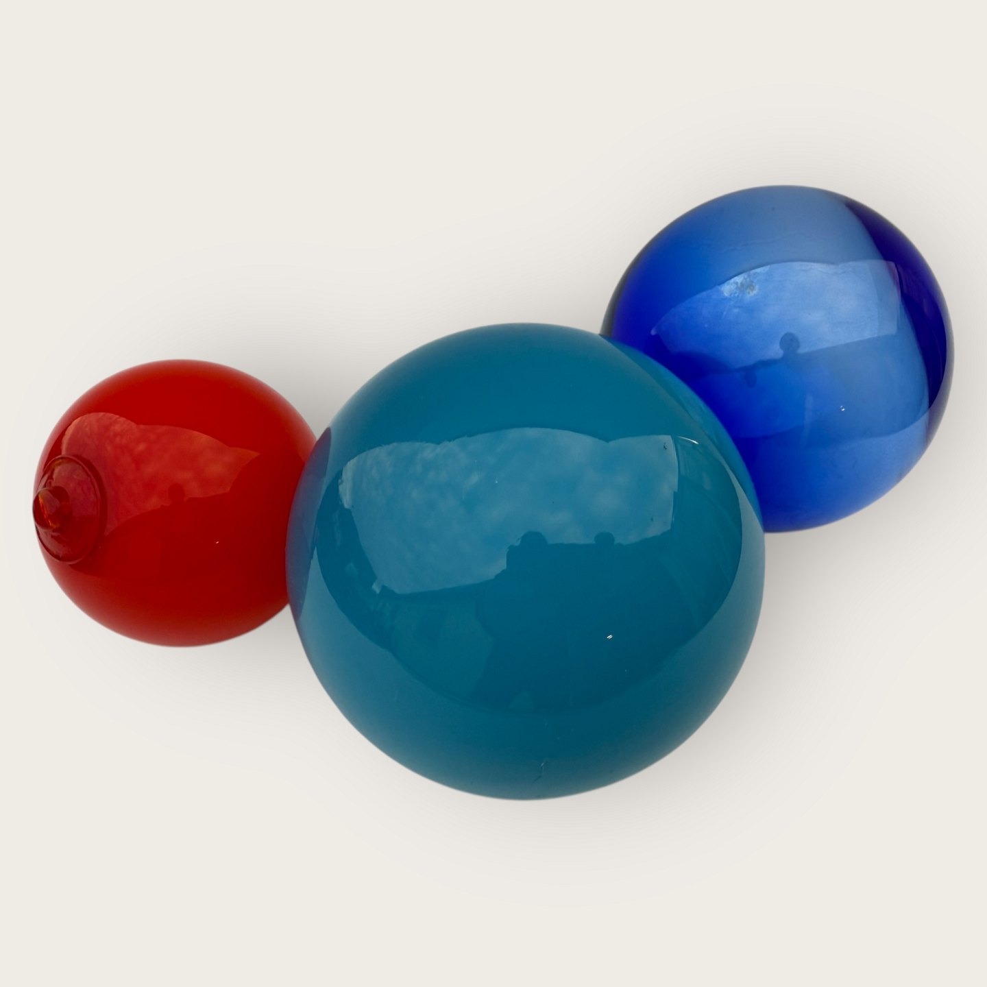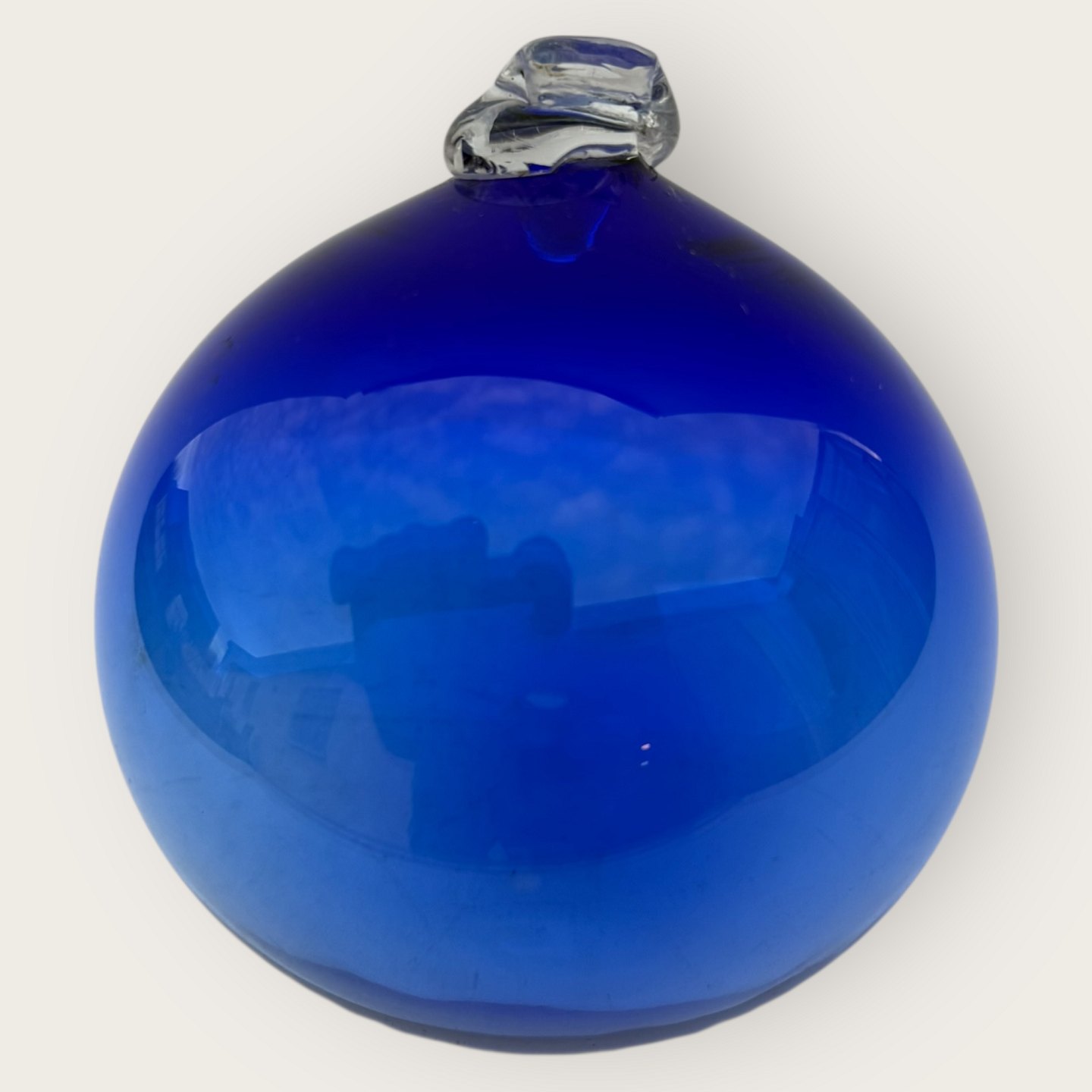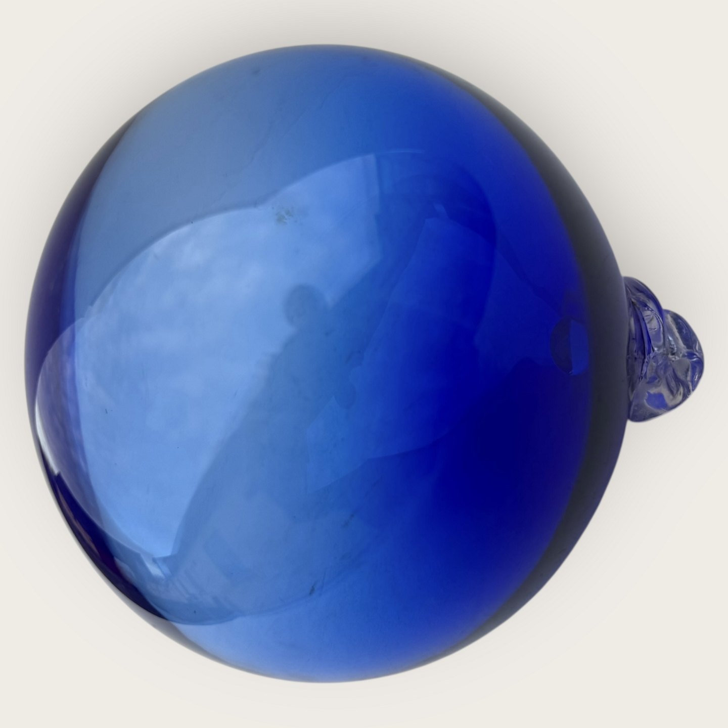 Blå glas kugle til ophæng eller til brug sammen med Carnaby / Otto Bauer vaser, muligvis fremstillet på Holmegaard, Ca. 11 cm i diameter *Pæn brugt stand*Lager: 1