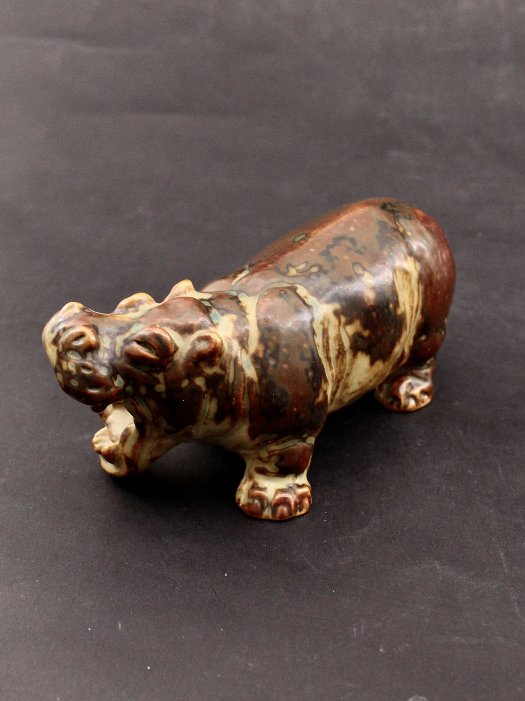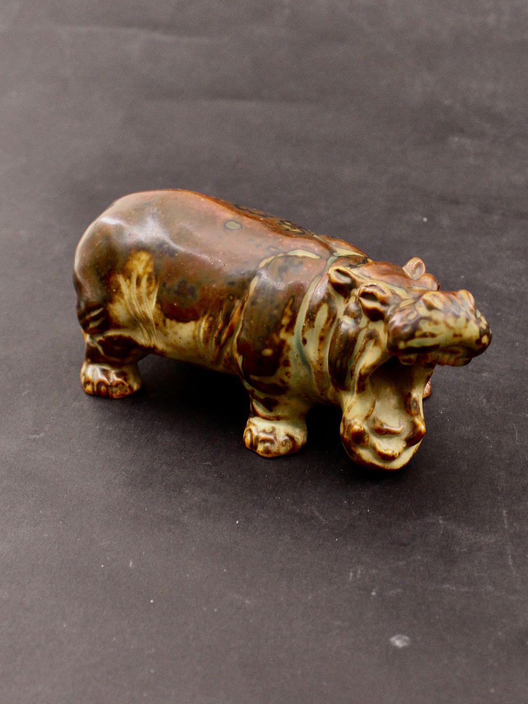 Royal Copenhagen stentøj 20239 lille sung glaseret flodhest 6,5 x 16 cm Signeret KK emne nr. 628586 Udstiller
