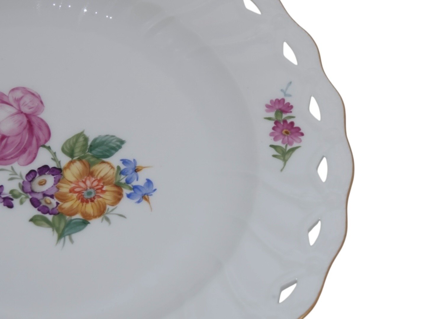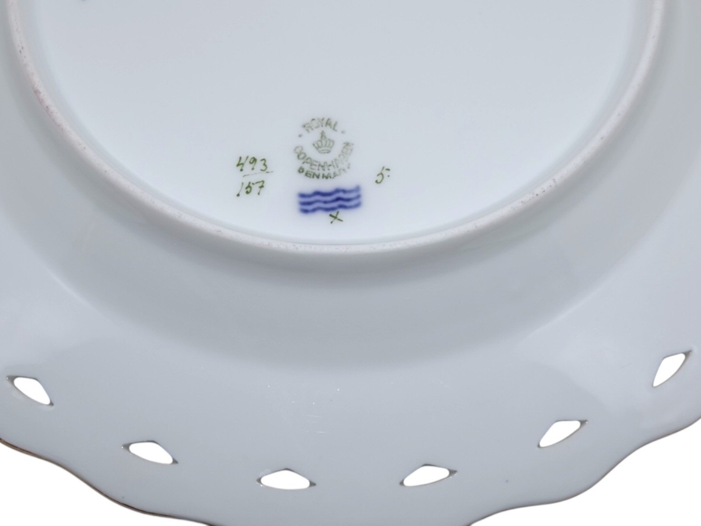 Royal Copenhagen Sachian Flower, rare dinner plate with pierced border.The factory mark shows, that this was produced between 1923 and 1928.