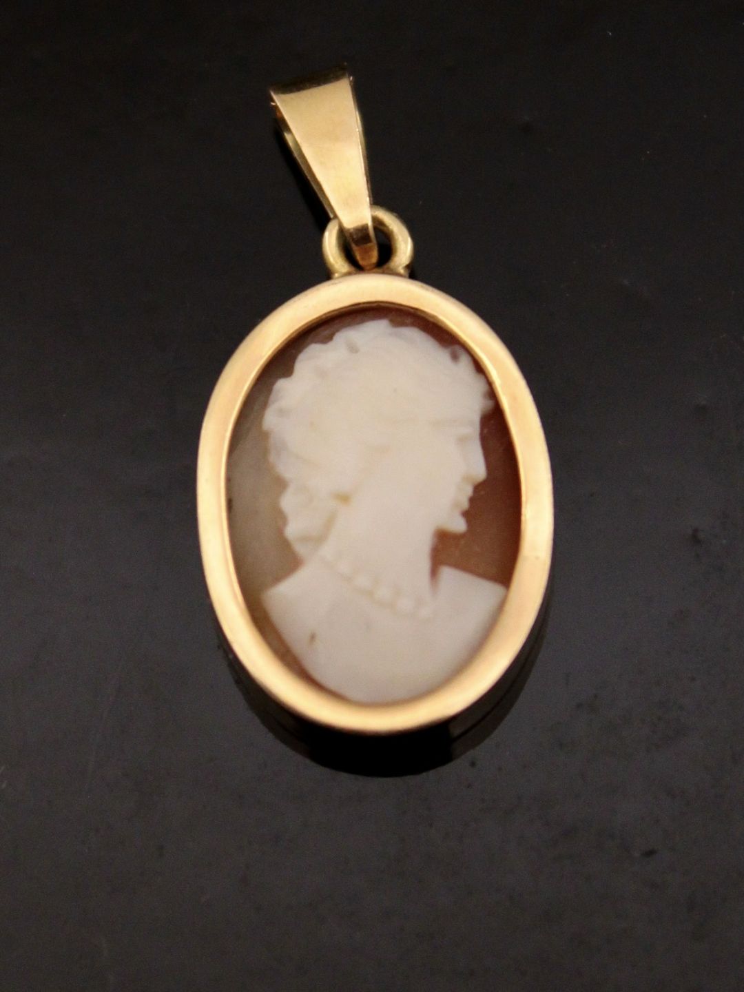 Came vedhæng 1,4 x 2 cm. monteret i 14 karat guld stemplet 585 emne nr. 628620 Udstiller