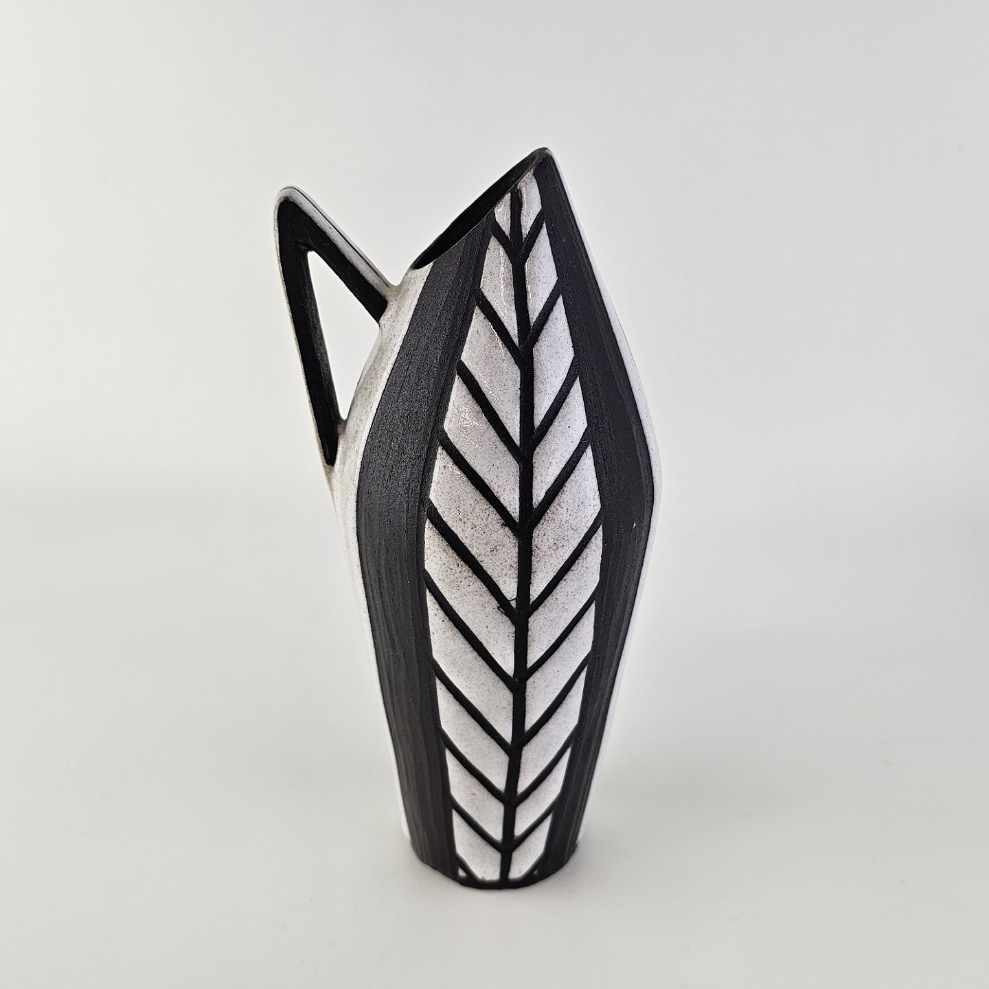Vase med hank i keramik fra Negro serien med abstrakt motiv på mørk baggrund. Nr. 5513Formgiver Marianne Starck