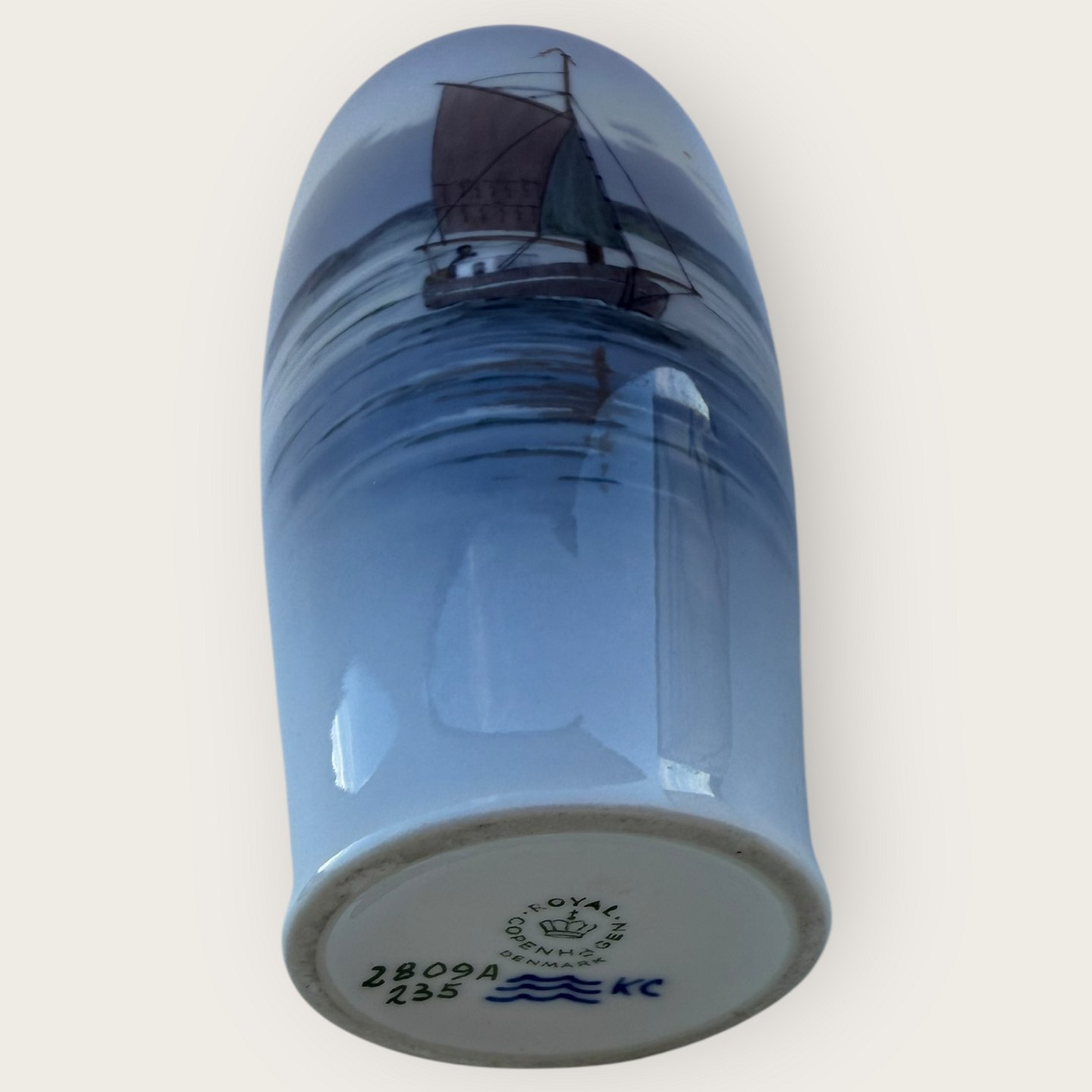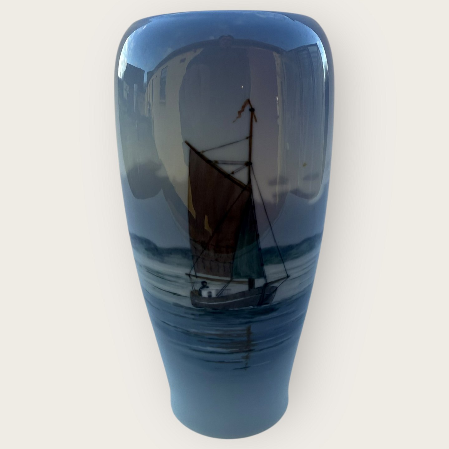 Royal Copenhagen, Vase med fiskekutter med sejl #2809A/235, 17cm høj, 1.sortering *Pæn stand*Lager: 1