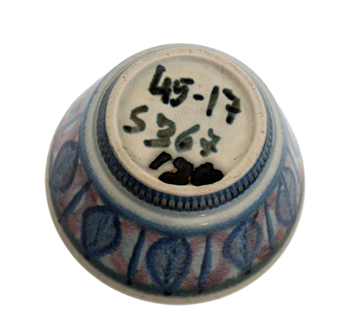 Knabstrup, Unika skål med farveprøver, formen på skålen er fra Knapstrupstellet. Skålen har tilhørt en af malerinderne på Knabstrup.Virkelig smuk og dekorativ skål. Farveprøve nr. 45-17 S367 190. Pris: 550 kr.