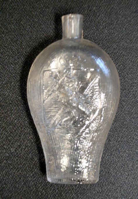 Svensk lommelærke med riller, 19. årh. Klar glas. Med svensk våbenskjold og motiv af vinklase. L: 14,5 cm.Emne nummer: 28684
