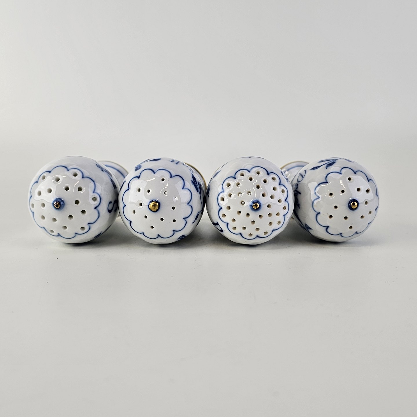 Salt- og peberbøsser i porcelæn fra stellet Kipling i fire varianter uden propperNr. 69 og 70