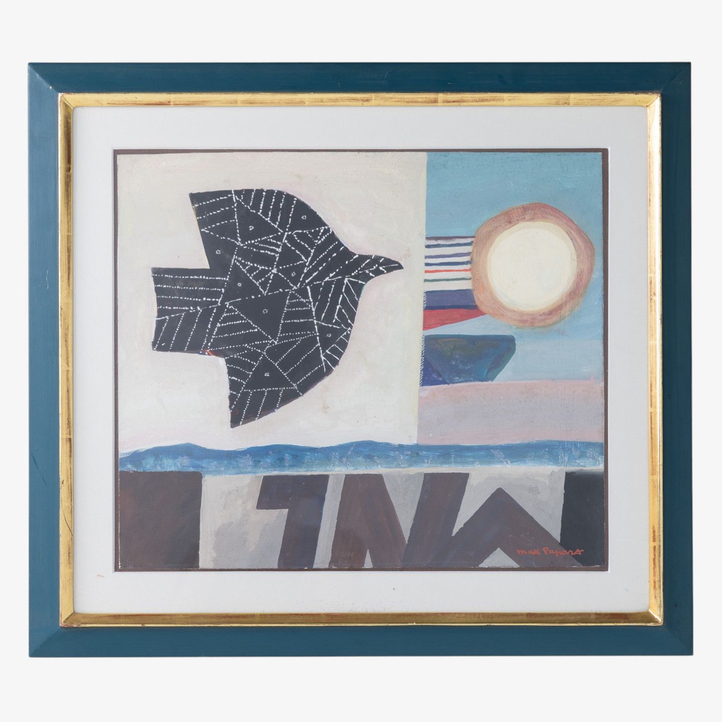 Gouache på papir i blå ramme. Signeret.