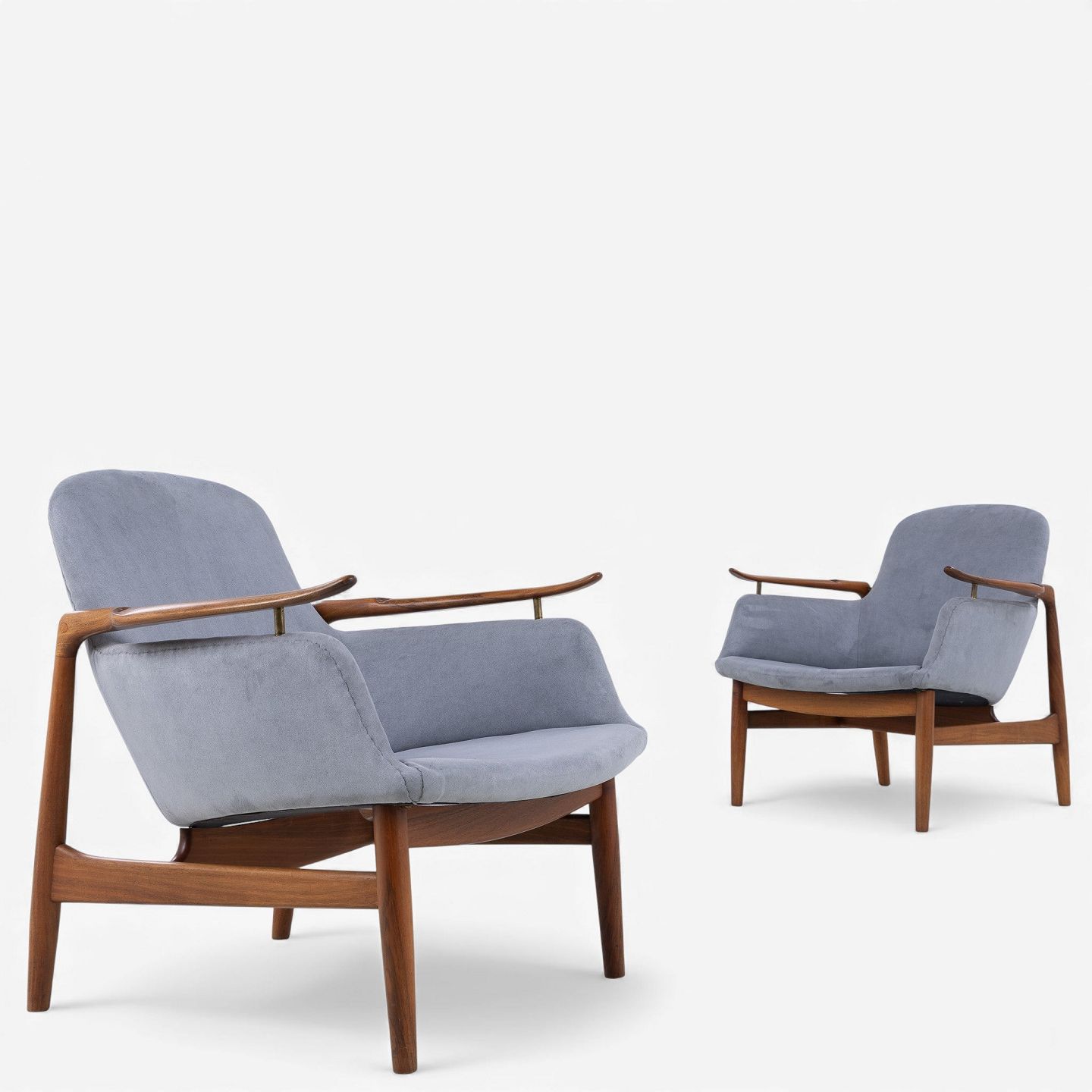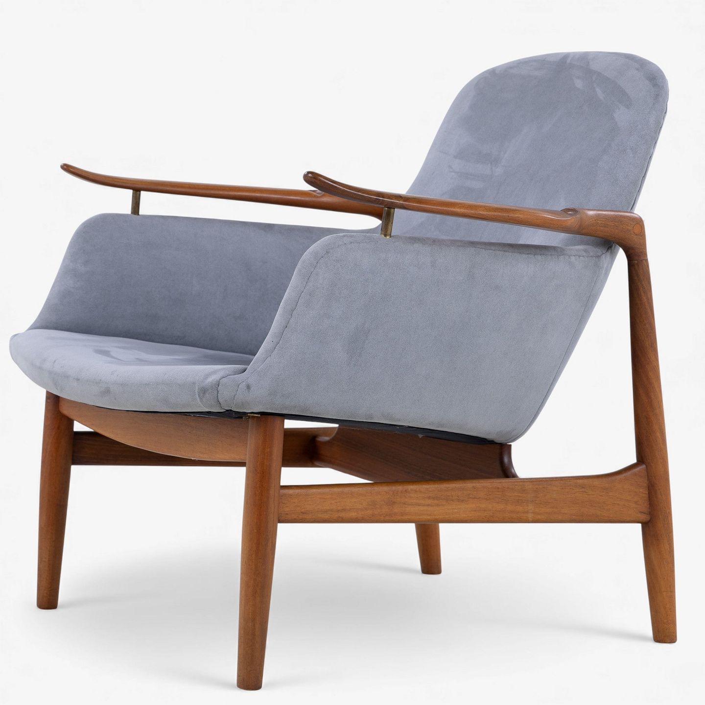 NV 53 - Lænestol i gråt 'Alcantara'-stof med stel i patineret valnød.