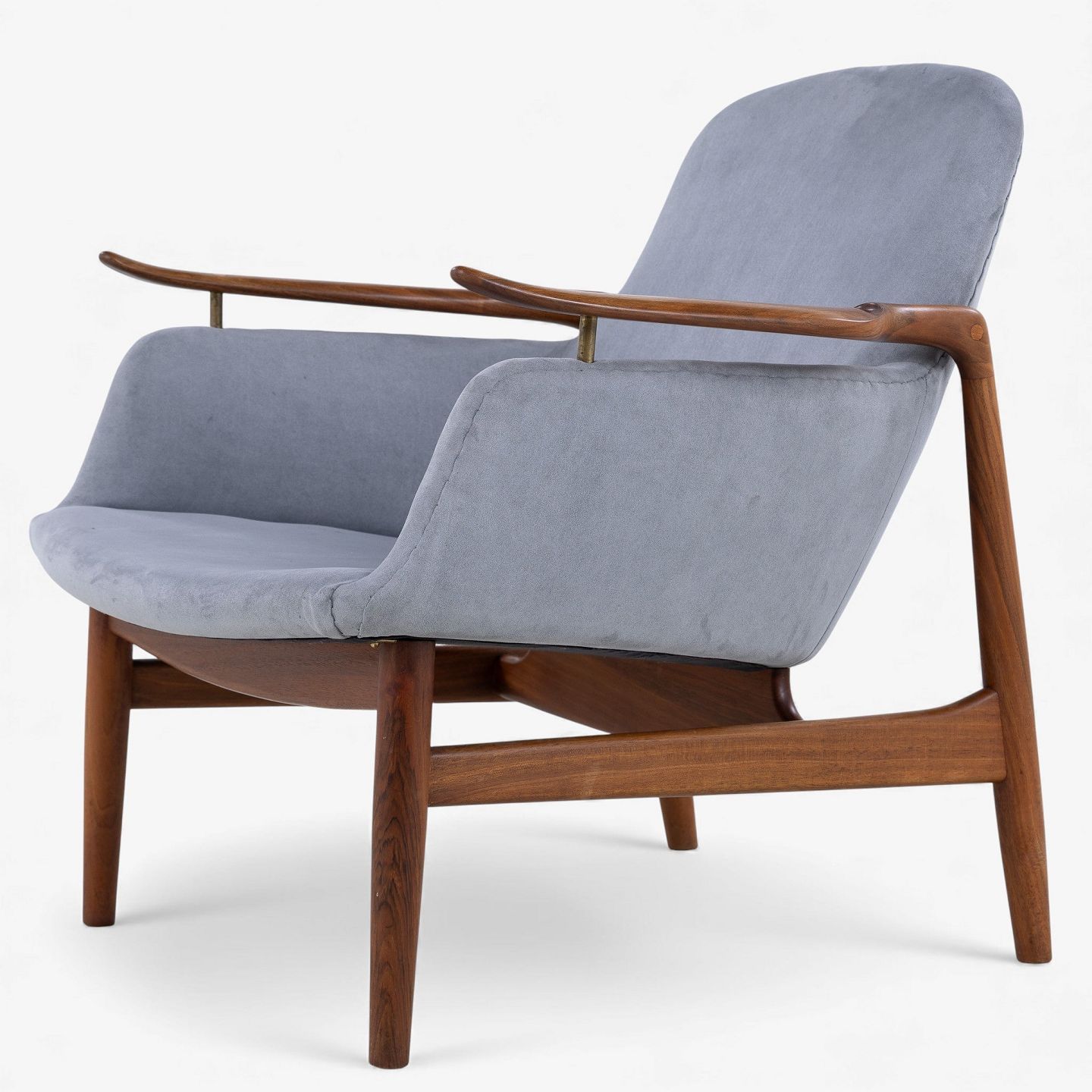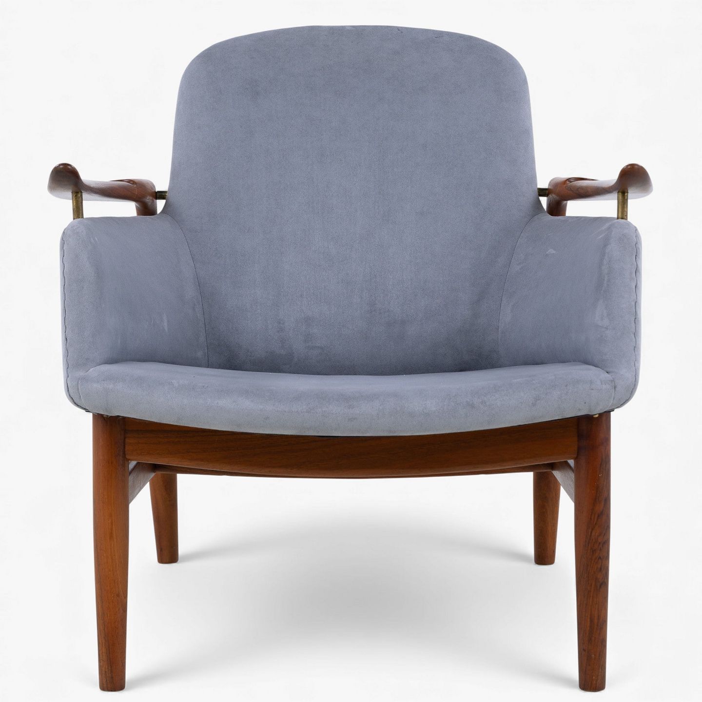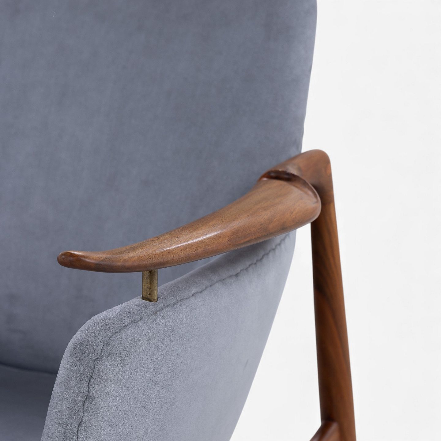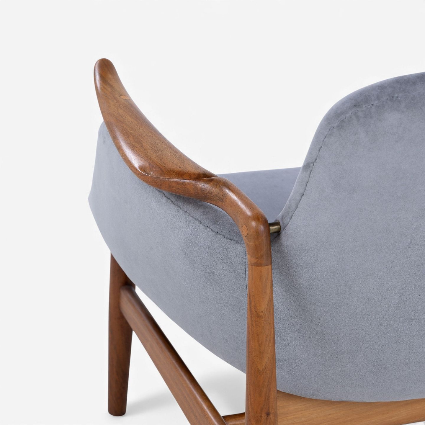 NV 53 - Lænestol i gråt 'Alcantara'-stof med stel i patineret valnød.