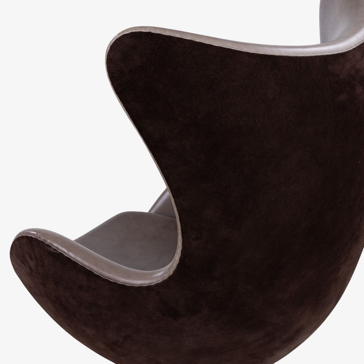 AJ 3316 - 'Ægget'-lænestol m. skammel i originalt, mørkebrunt Elegance-læder og brunt ruskind på stel i bronze. Jubilæumsmodel fra 2008. Nummeret 489/999.
