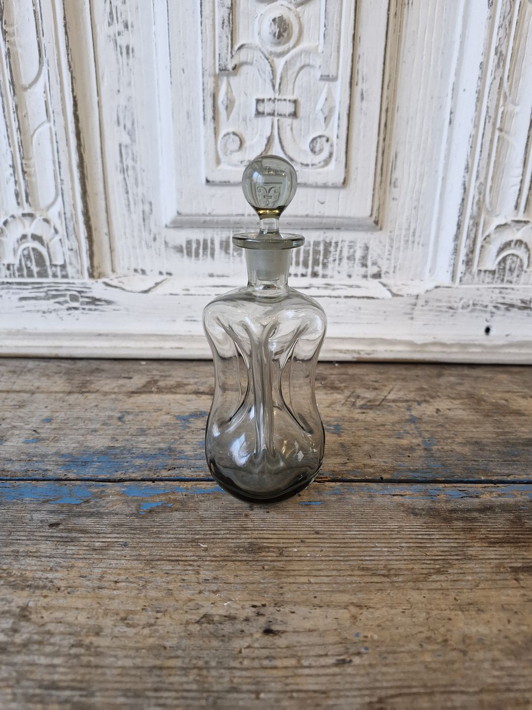 Holmegaard lille klukflaske i røgfarvet glasHøjde 16 cm.