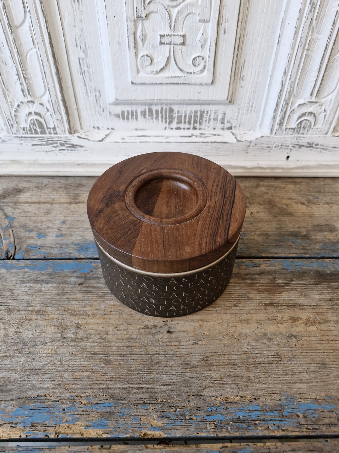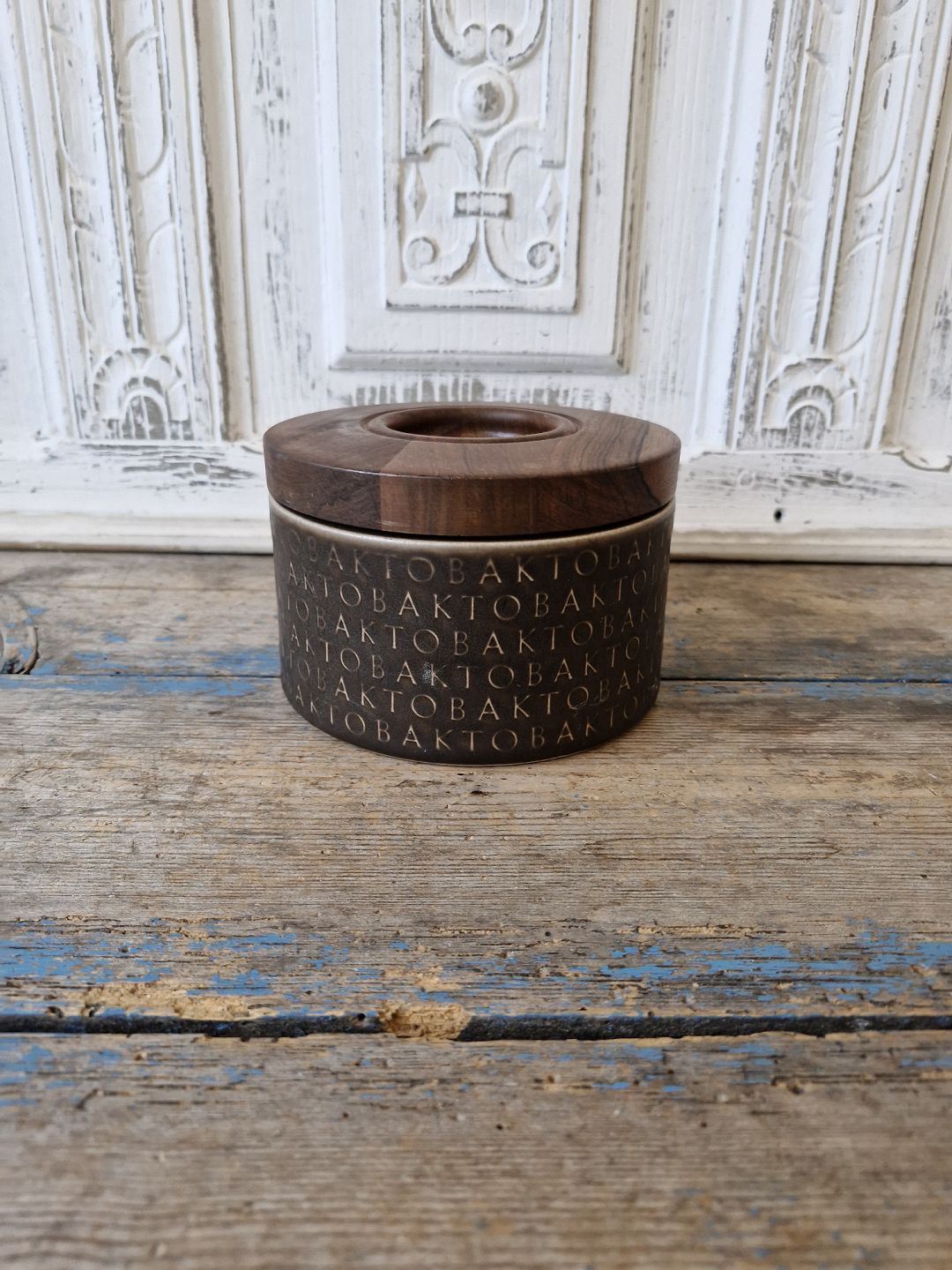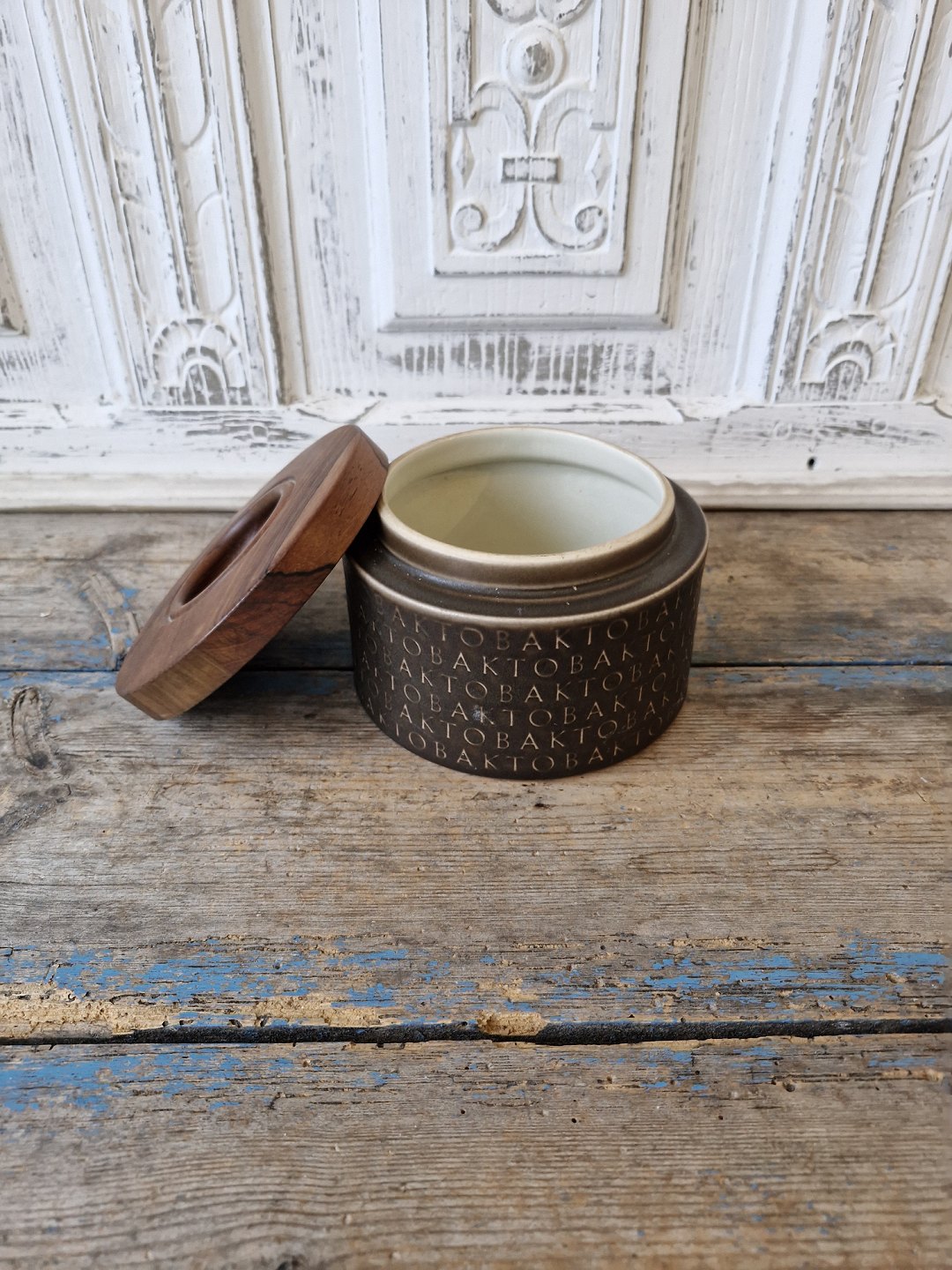 Jens Harald Quistgaard for Kronjyden tobakskrukke med teaktræslågHøjde 10 cm. Diameter 15 cm.