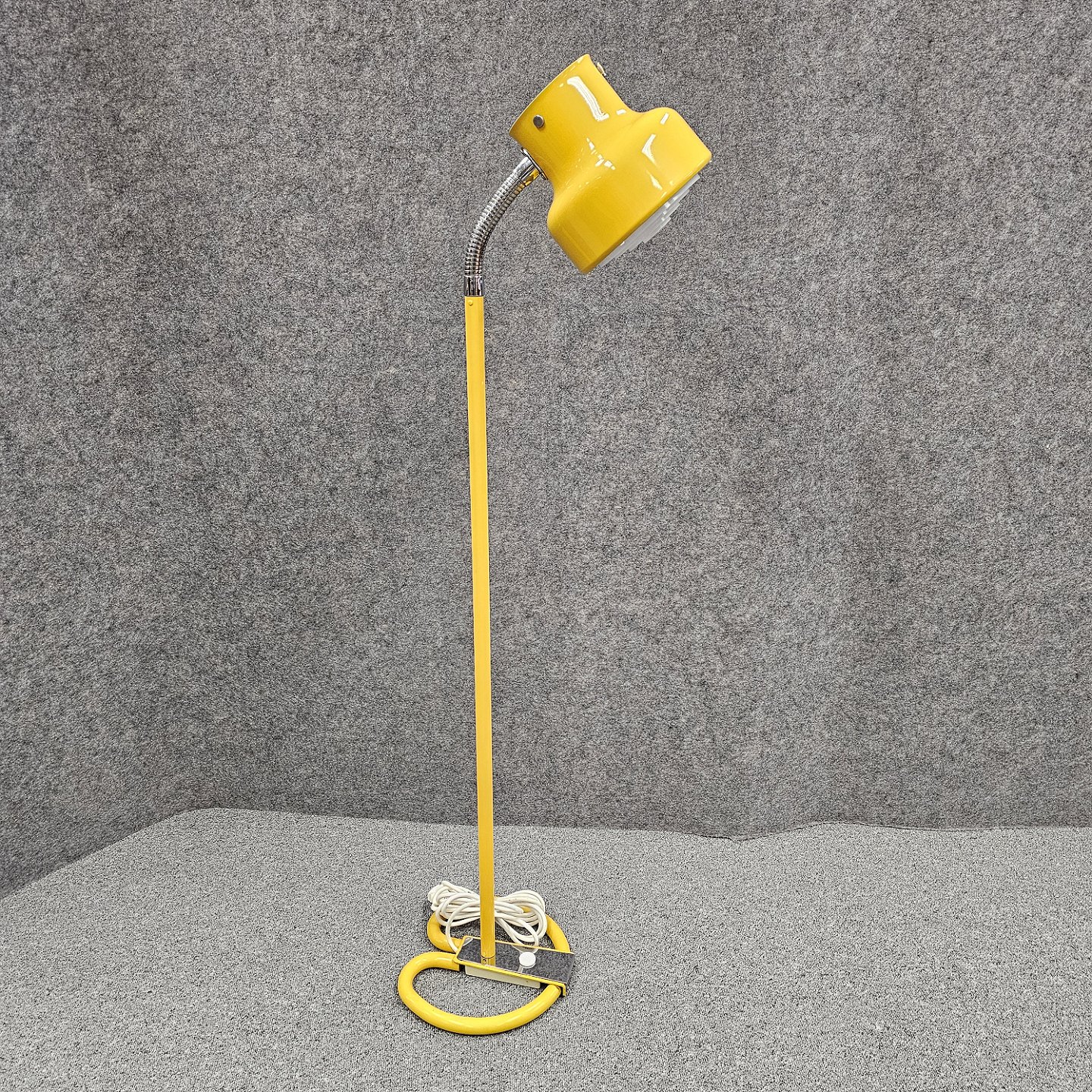 Bumling gulvlampe i gult lakeret metal med justerbar skærmDesigner Anders Pehrson