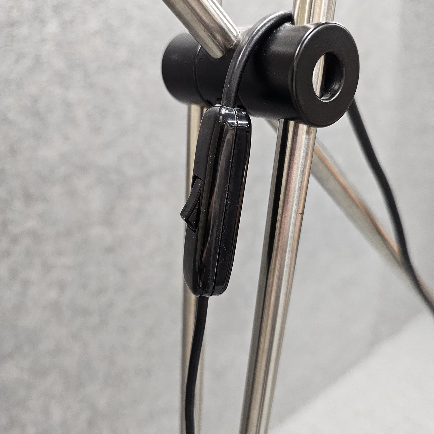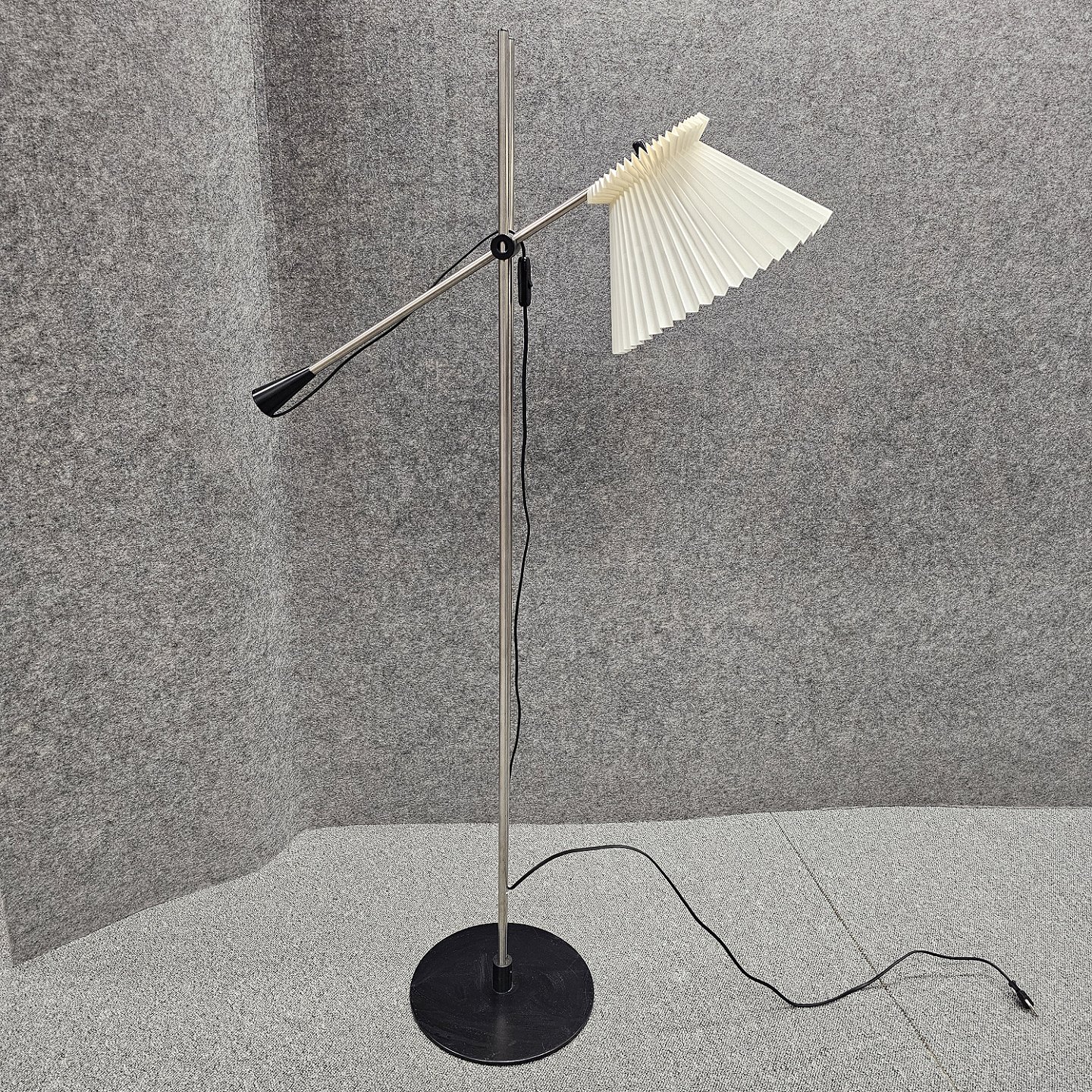 Gulvlampe i metal med sort fod, sort ledning og hvid skærmModel 323