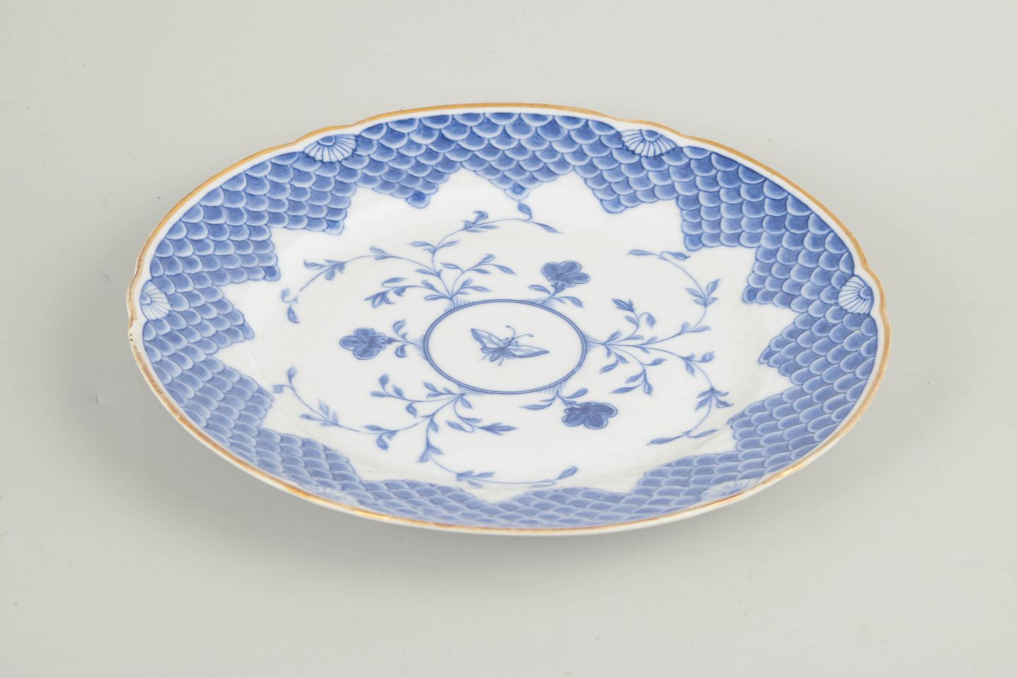 sommerfugl middagstallerken med guldkant, 1880’erne.