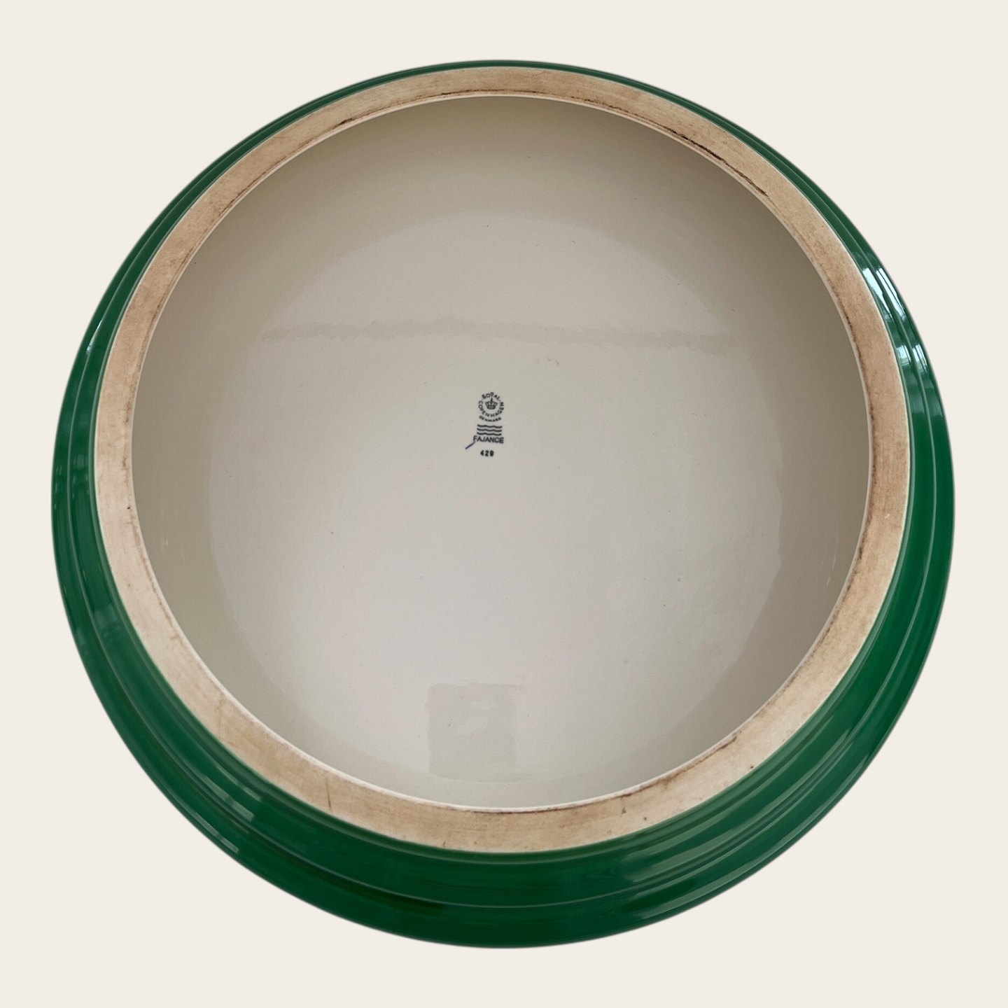 Royal Copenhagen, Aluminia, Ursula, Opsats, Hvid/ Grøn #429, 1. sortering, 38cm i diameter, 8cm høj, Design Ursula Munch Petersen *Pæn stand med minimale brugsspor*Lager: 1