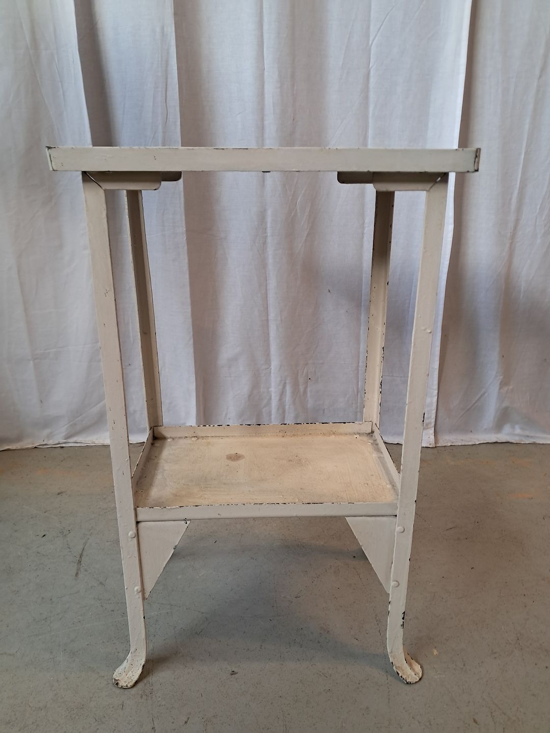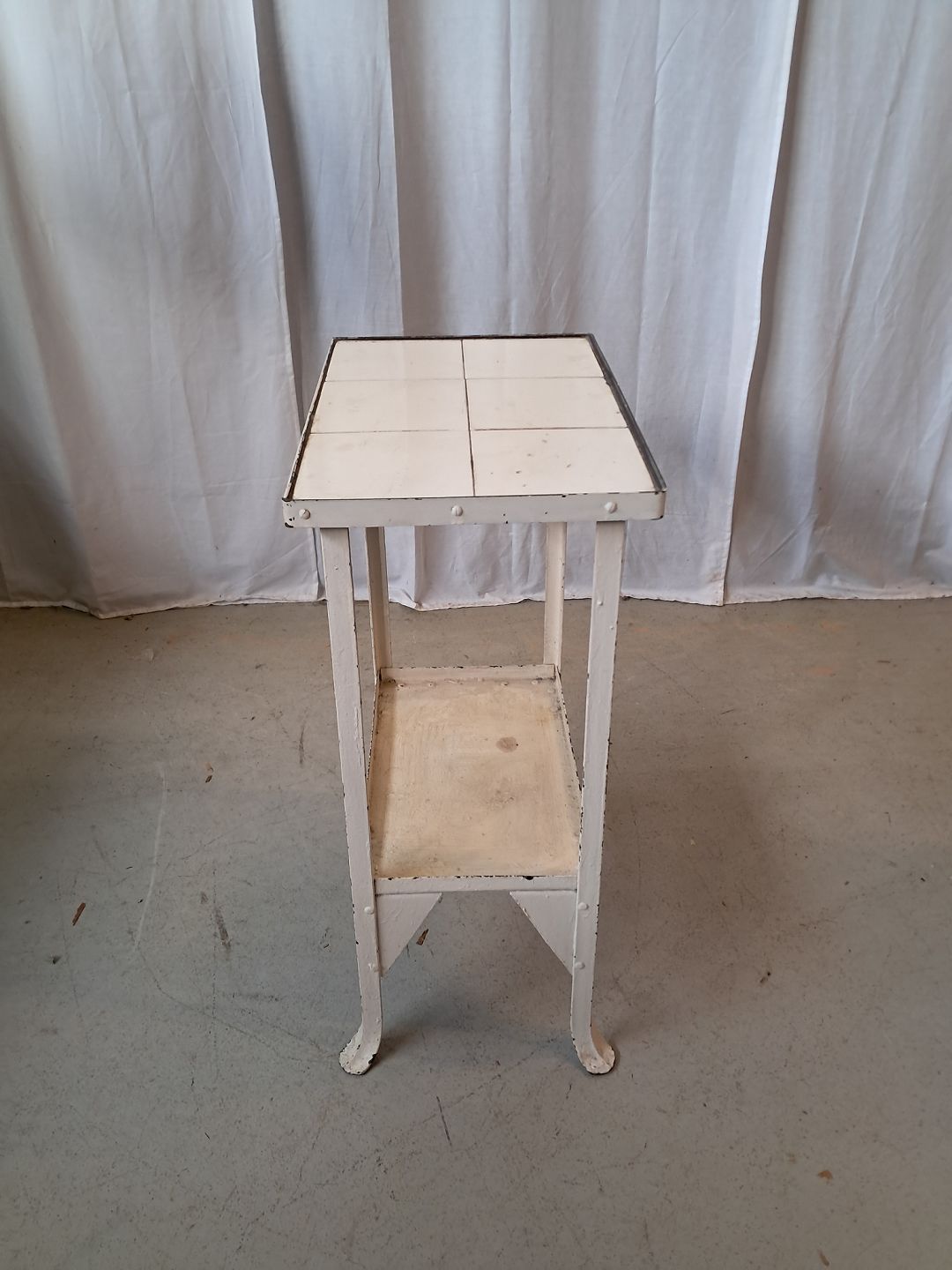 Lille gasbord i malet metal med fliser, fra 1930erne.Det har brugsspor.